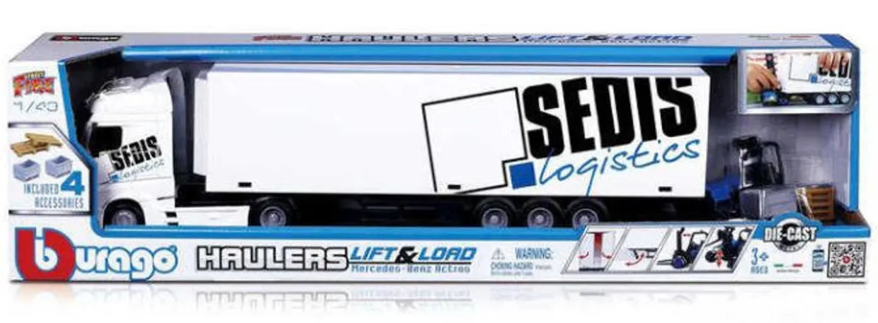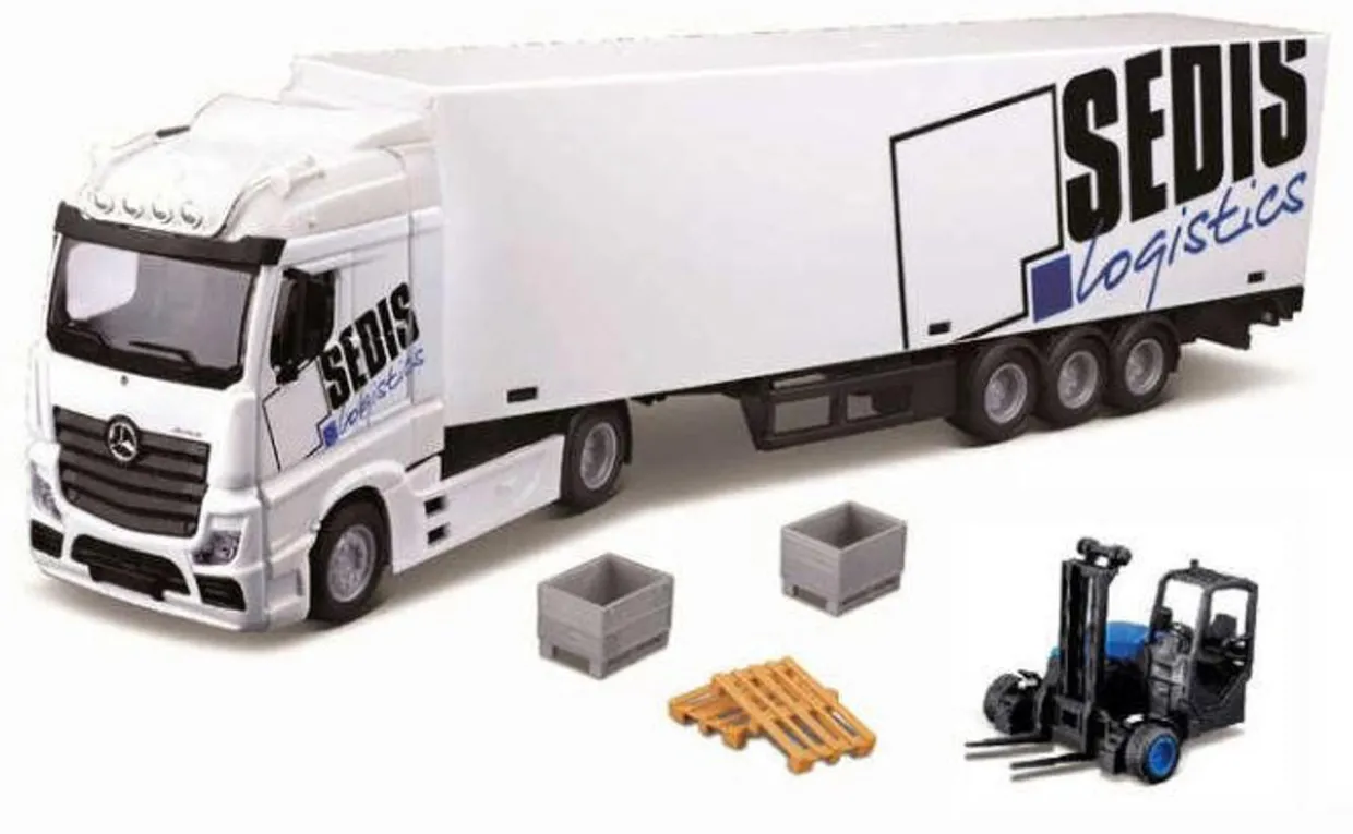 The Burago MB Actros Lift and Load Truck With Pallets is a diecast model from this fantastic manufacturer.