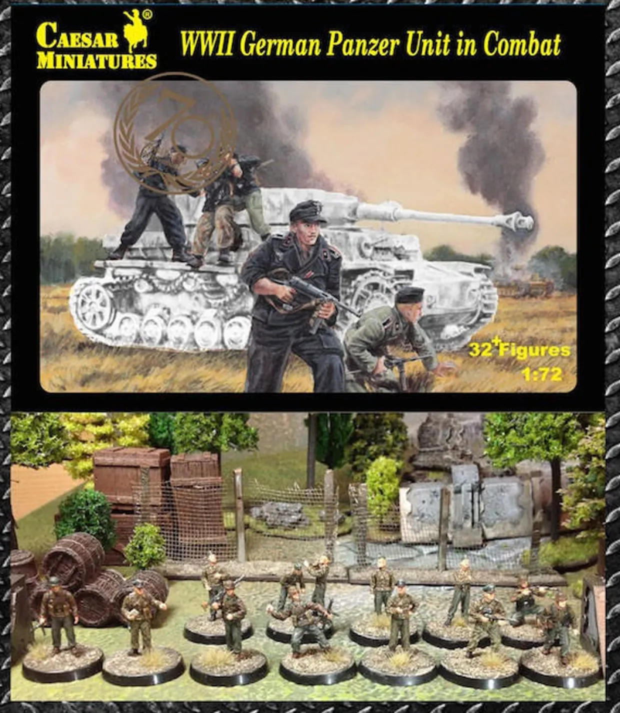 The Caesar Miniatures 1/72 German Panzer Unit in Combat WWII from our 1/72 and 1/76 scale figure model kits range accurately recreates the real-life German soldiers from World War II. This figures set includes 32 unpainted plastic figures. This plastic model kit requires paint, and may require glue, to complete.