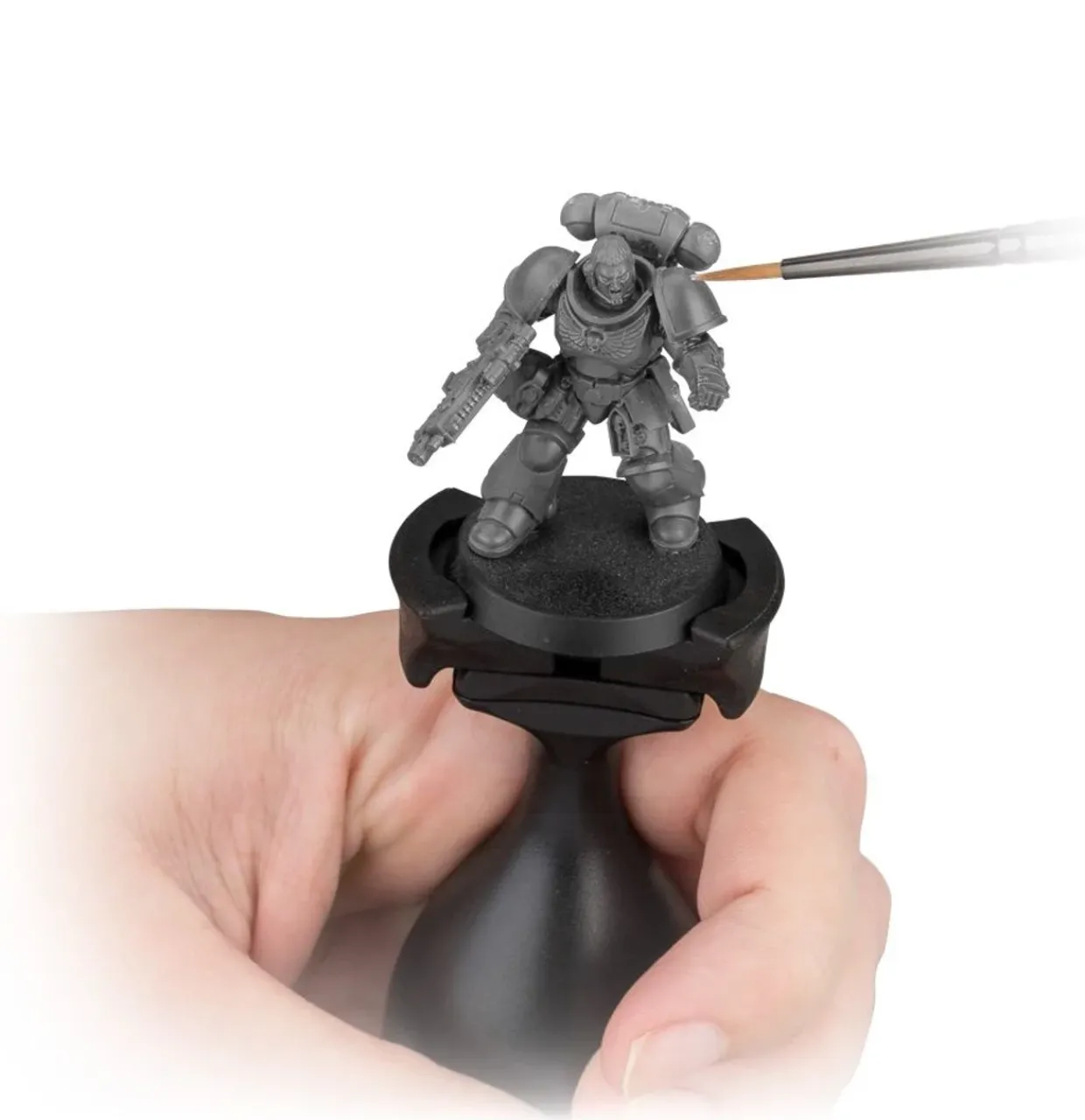 By removing much of the bulk in the spring-loaded upper clasp, it’s easier than ever to reach all around – and under – your models. The grip is more ergonomic, sitting comfortably in your palm for fatigue-free marathon painting sessions. The redesigned shape of the base improves the balance and distribution of weight, allowing us to make it even taller while reducing accidental knock-downs.