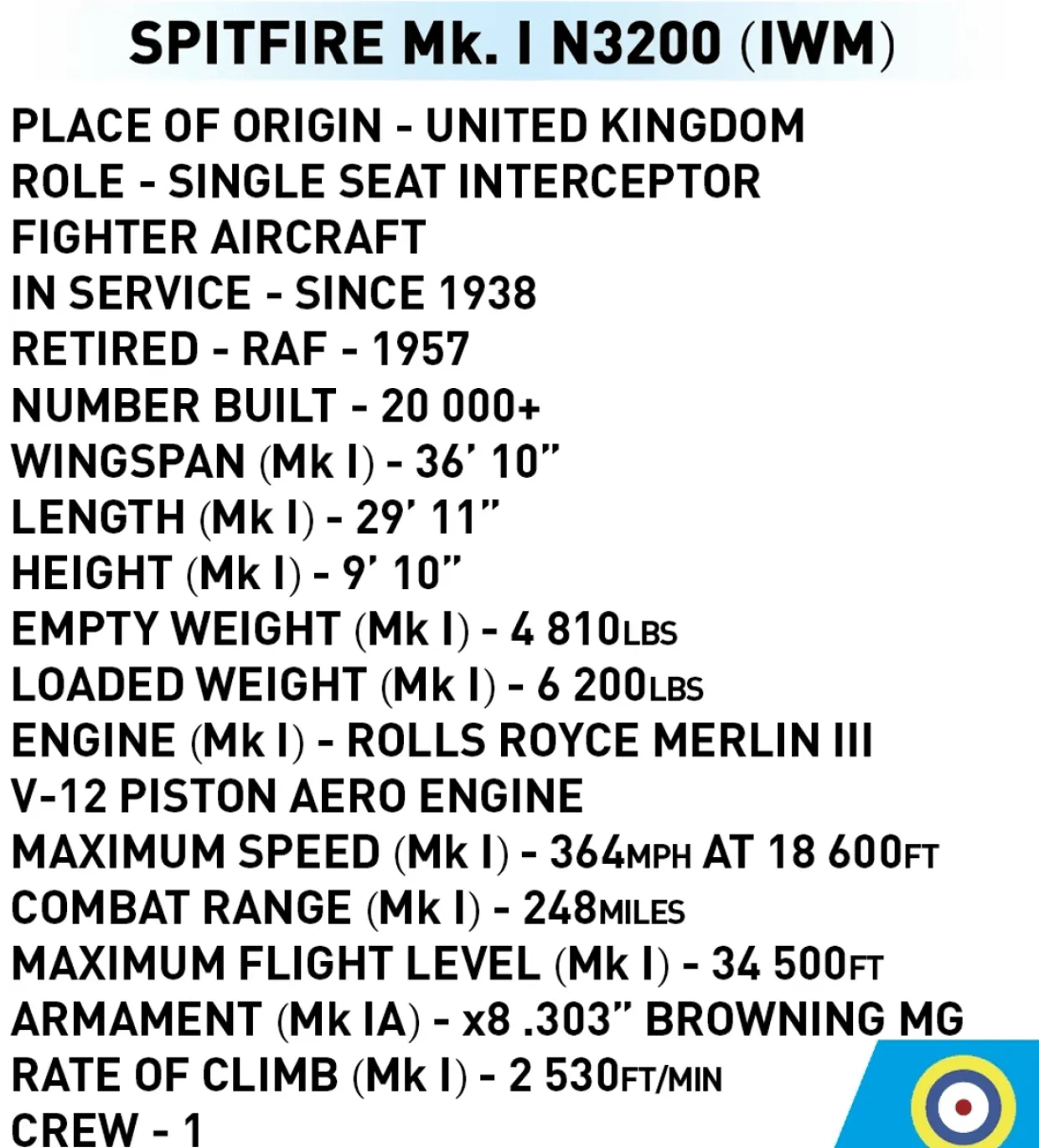 Buy Cobi Spitfire Mk. I N3200 – Imperial War Museum Duxford Online