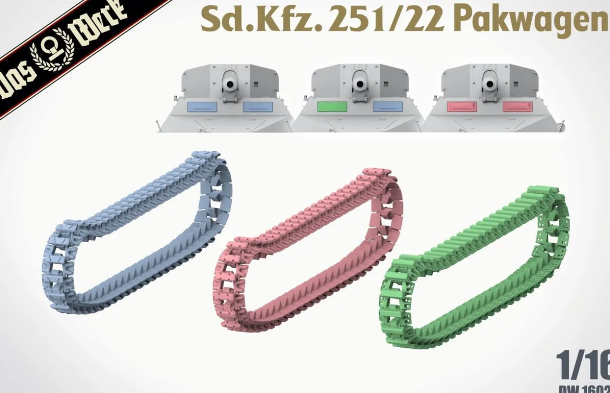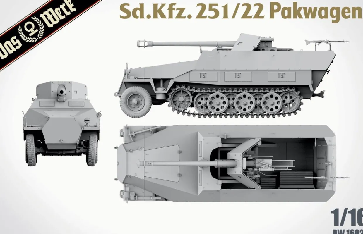 The Das Werk 1/16 Sd.Kfz.251/22 Pakwagen Half-Track from our 1/16 scale military vehicle model kits range range accurately recreates the real-life German half-track used during World War II. This plastic model kit requires paint and glue to complete.