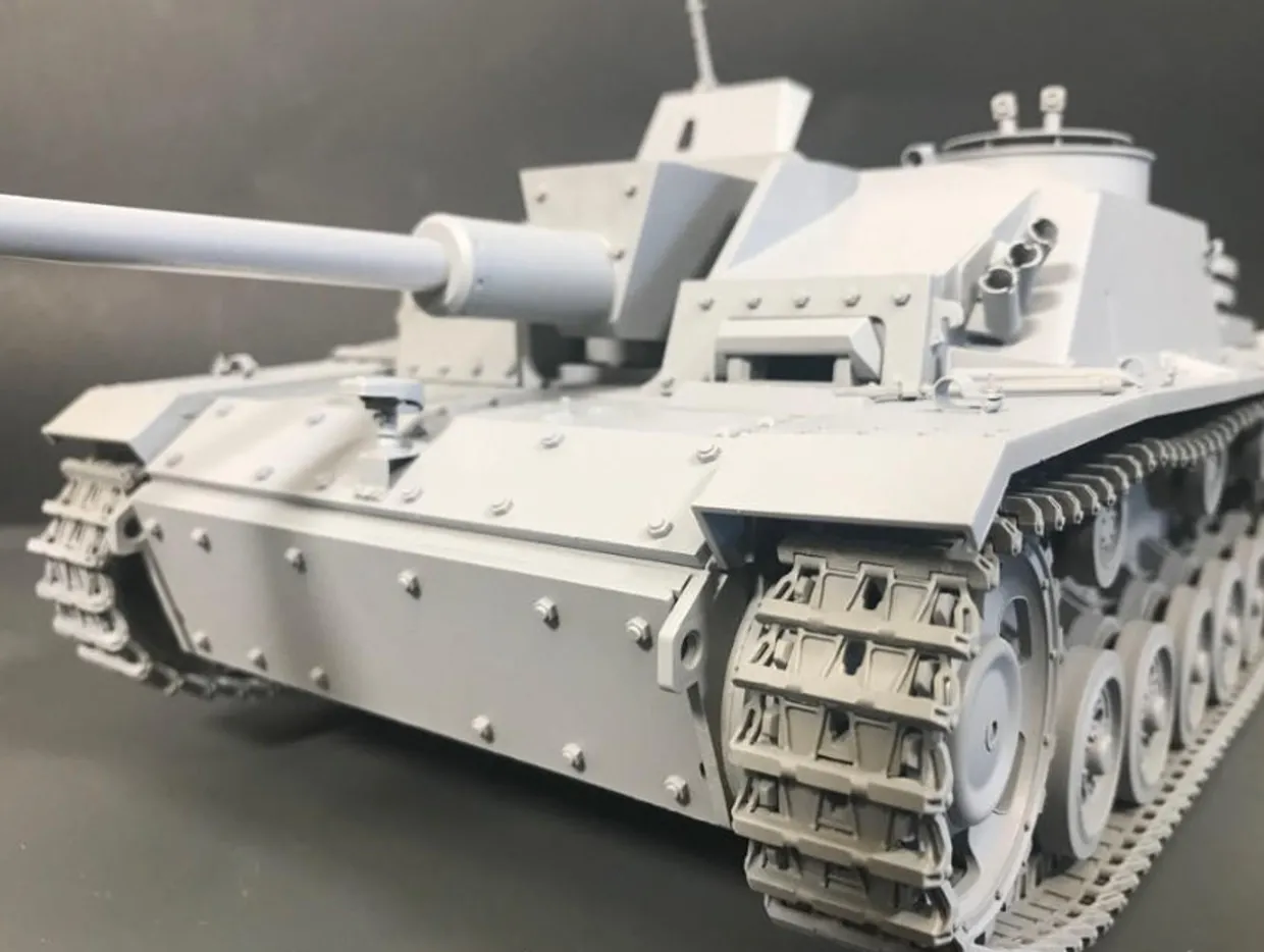 The Das Werk 1/16 StuG.III Ausf.G Early Production from our 1/16 scale military vehicle model kits range range accurately recreates the real-life German self-propelled gun used during World War II. This plastic model kit requires paint and glue to complete.