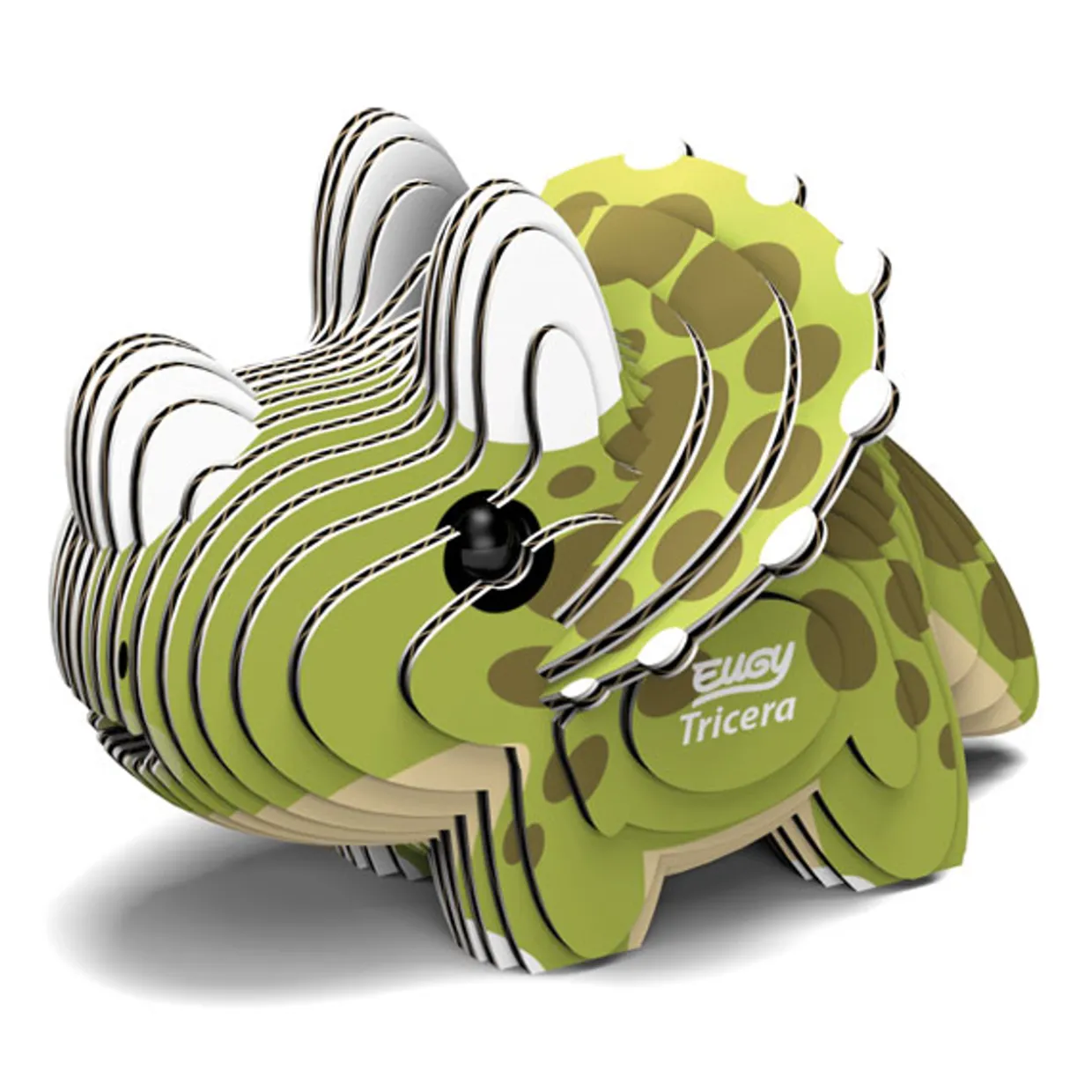 The Eugy Tricera is a 3D puzzle made from cardboard, designed for children ages 4 and up.