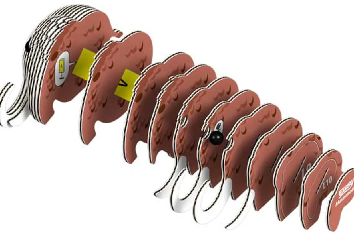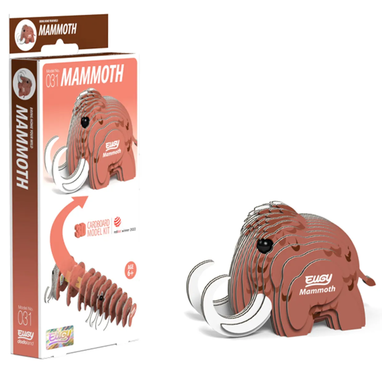 The Eugy Mammoth is a 3D puzzle made from cardboard, designed for children ages 4 and up.