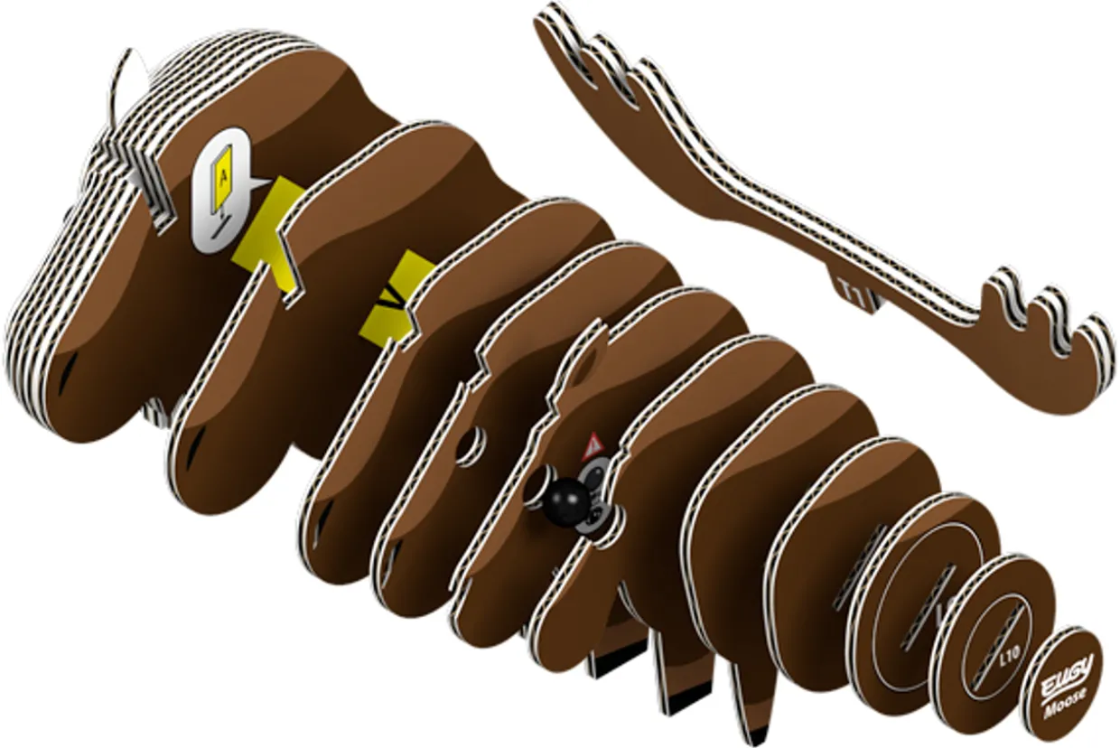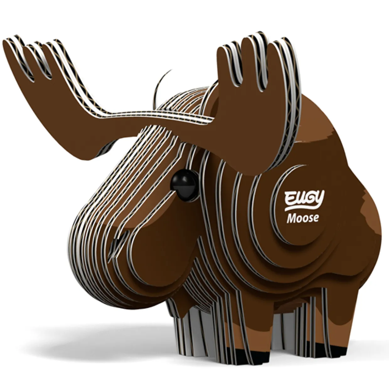 The Eugy Moose is a 3D puzzle made from cardboard, designed for children ages 4 and up.