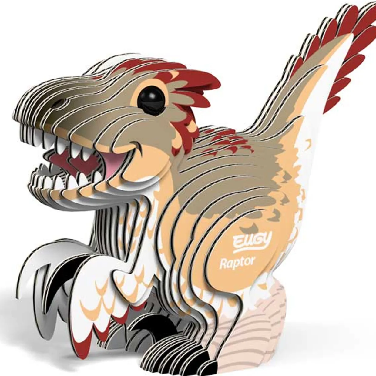 The Eugy Raptor is a 3D puzzle made from cardboard, designed for children ages 4 and up.