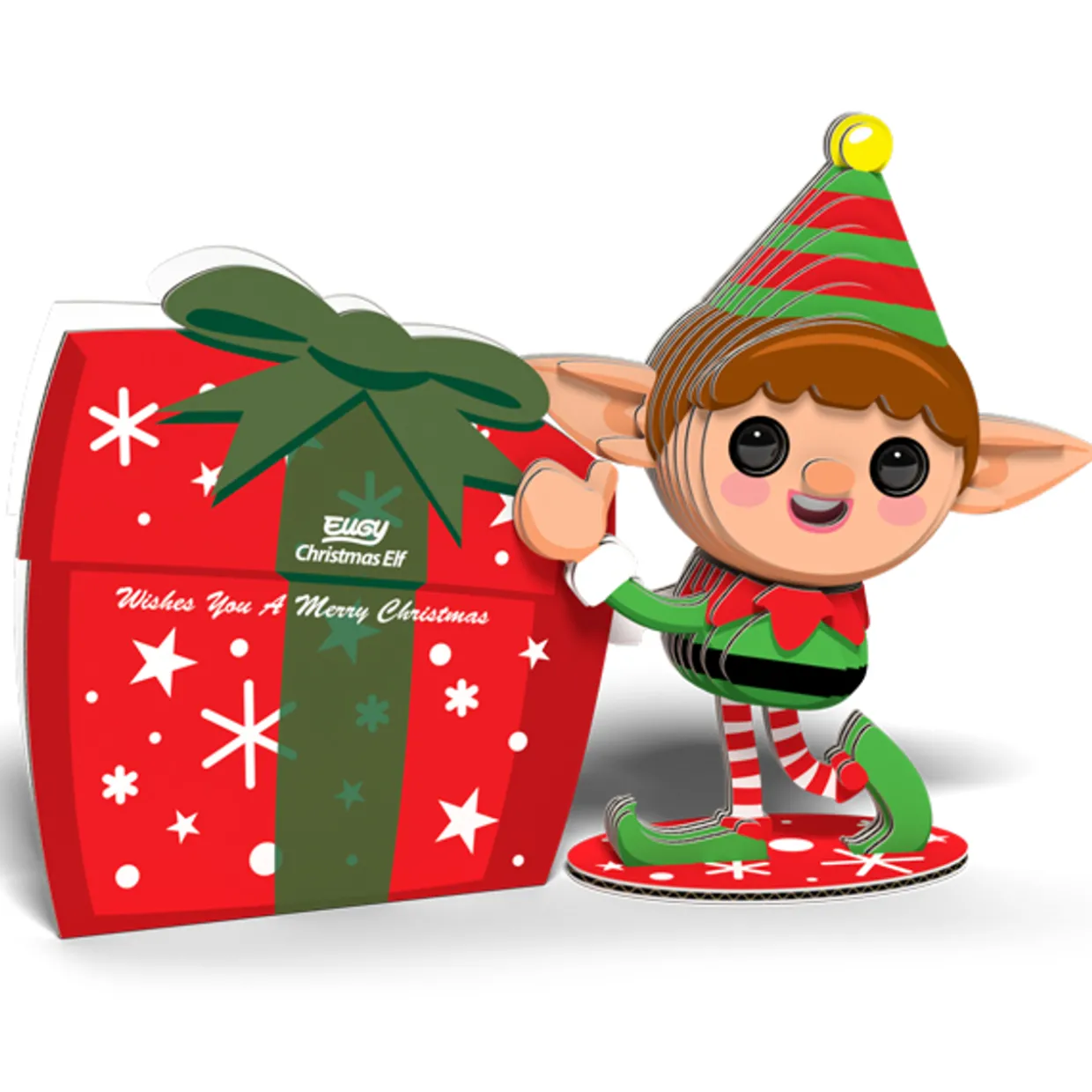 The Eugy Christmas Elf is a 3D puzzle made from cardboard, designed for children ages 4 and up.