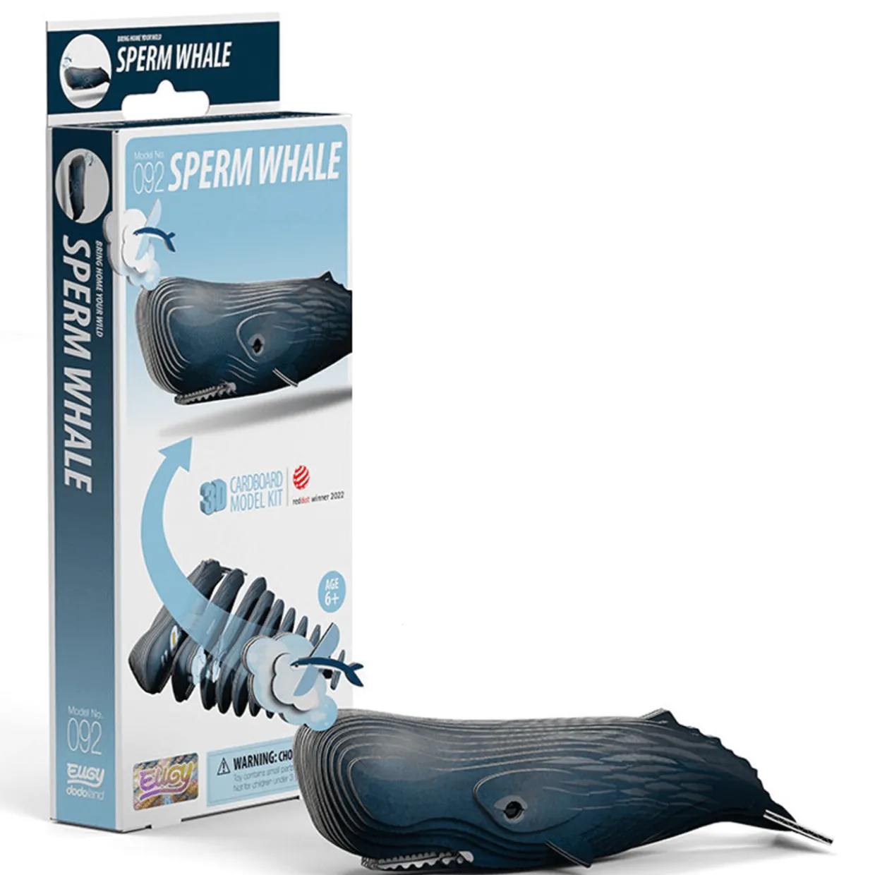 The Eugy 92 Sperm Whale Card 3D Puzzle made from cardboard, designed for children ages 4 and up.