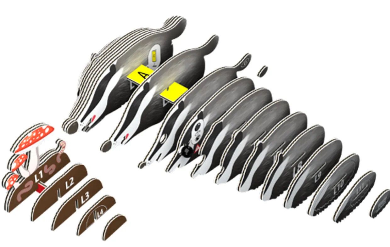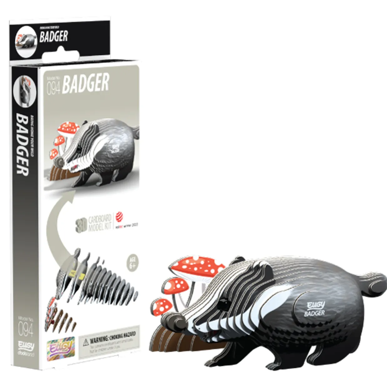 The Eugy 94 Badger is a 3D puzzle made from cardboard, designed for children ages 4 and up.