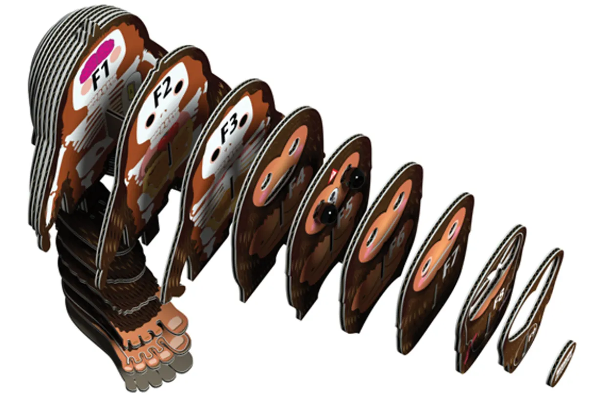 The Eugy 98 Sasquatch Bigfoot is a 3D puzzle made from cardboard, designed for children ages 4 and up.