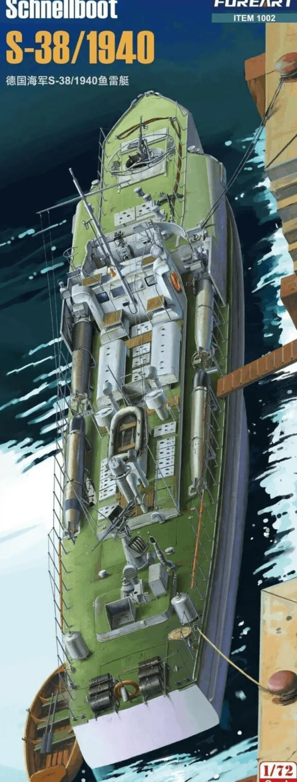 The Fore Hobby 1/72 Schnellboot S-38 1940 from our 1/72 and 1/96 scale ship model kits range accurately recreates the real-life German torpedo boat from World War II. This plastic model kit requires paint and glue to complete.