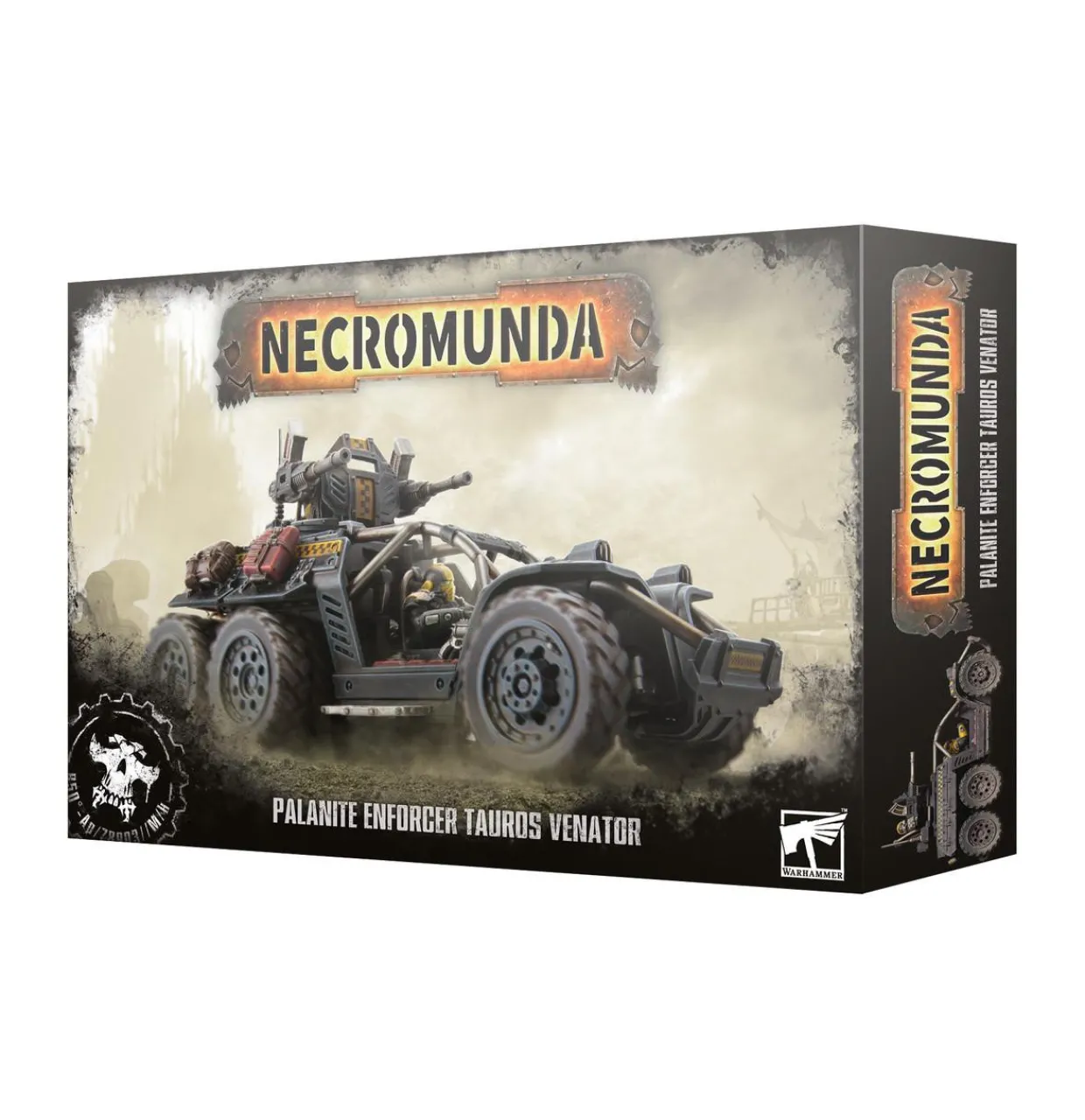 The Palanite Enforcer Tauros Venator from the Necromunda range provides a highly detailed wheeled off-road vehicle to carry your Palanite Enforcers into the Ash Wastes.