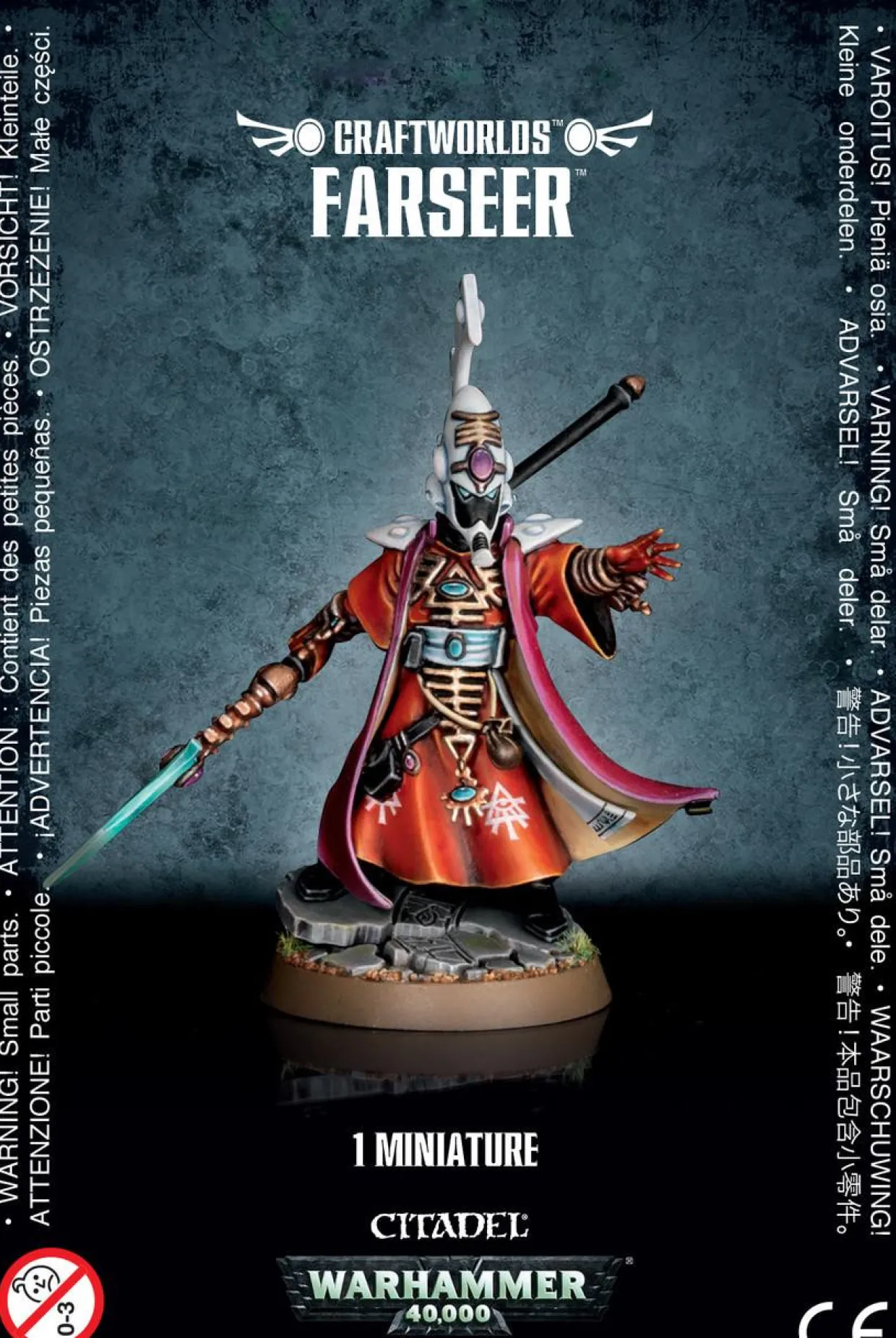 The Aeldari Farseer from the Warhammer 40k range provides a highly detailed character figure for use in your Aeldari army.
