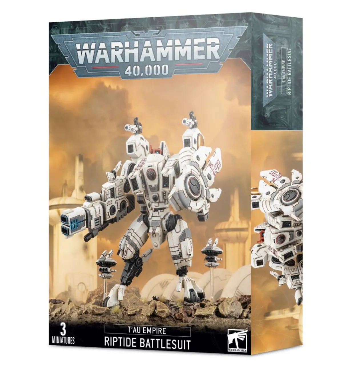 XV104 Riptide is the pinnacle of the Earth caste’s battlesuit development. It stands twice as tall as the XV8 Crisis suit, but its movements are more like those of its smaller cousins than the mechanical stiffness displayed by Imperial walkers with their crude servo-motors.The XV104 Riptide takes the evolution of the T’au battlesuit to a whole new level. First and foremost the model is huge, towering over the rest of the T’au even other battlesuits and tanks. Sleek and elegant armour panels, along with bolts and grills, cover its body. Despite its enormous size, with ball and socket joints it remains a manoeuvrable model whose arms and legs can be posed in a variety of different ways. Either standing tall or even kneeling down, you can use it as a unique, dynamic centrepiece for your T’au army. As well as three variant heads it comes with a range of weapons options including a heavy burst cannon, twin-linked smart missile systems, fusion blaster and Riptide shield generator. If that wasn’t enough, the kit also comes with two Shielded Missile Drones.This multi-part plastic kit contains 108 components and a T’au transfer sheet with which to make a XV104 Riptide Battlesuit and two Shielded Missile Drones. This kit comes supplied unpainted and requires assembly.