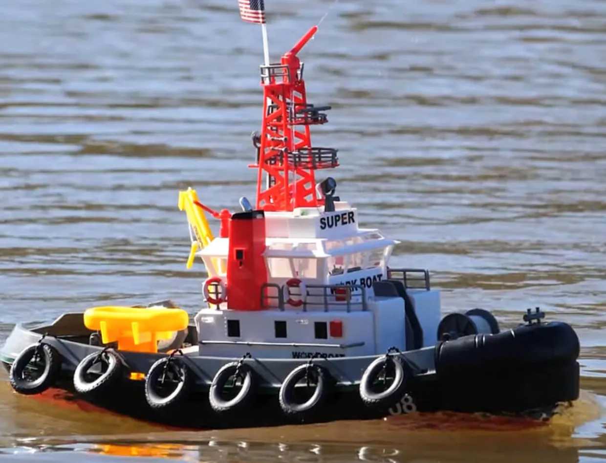 The ready to run radio control Heng Long Tug Work Boat 5ch 2.4ghz With Water Hose Function. A floating workhorse, Tug boats have no equal when it comes to towing, salvage and manoevering larger vessels into docks and harbour positions. Some even help with firefighting by having deluge gun water jets.