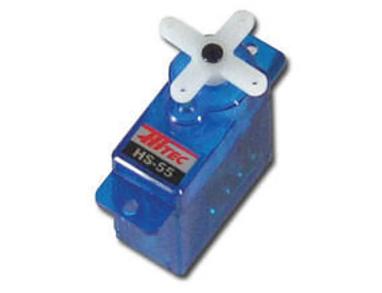 The Hitec HS-55 is the perfect choice for any micro application from indoor R/C and hand launch gliders, to ultra small electric Park and Yard flyers, Speed 400 and 1/2A powered aircraft.