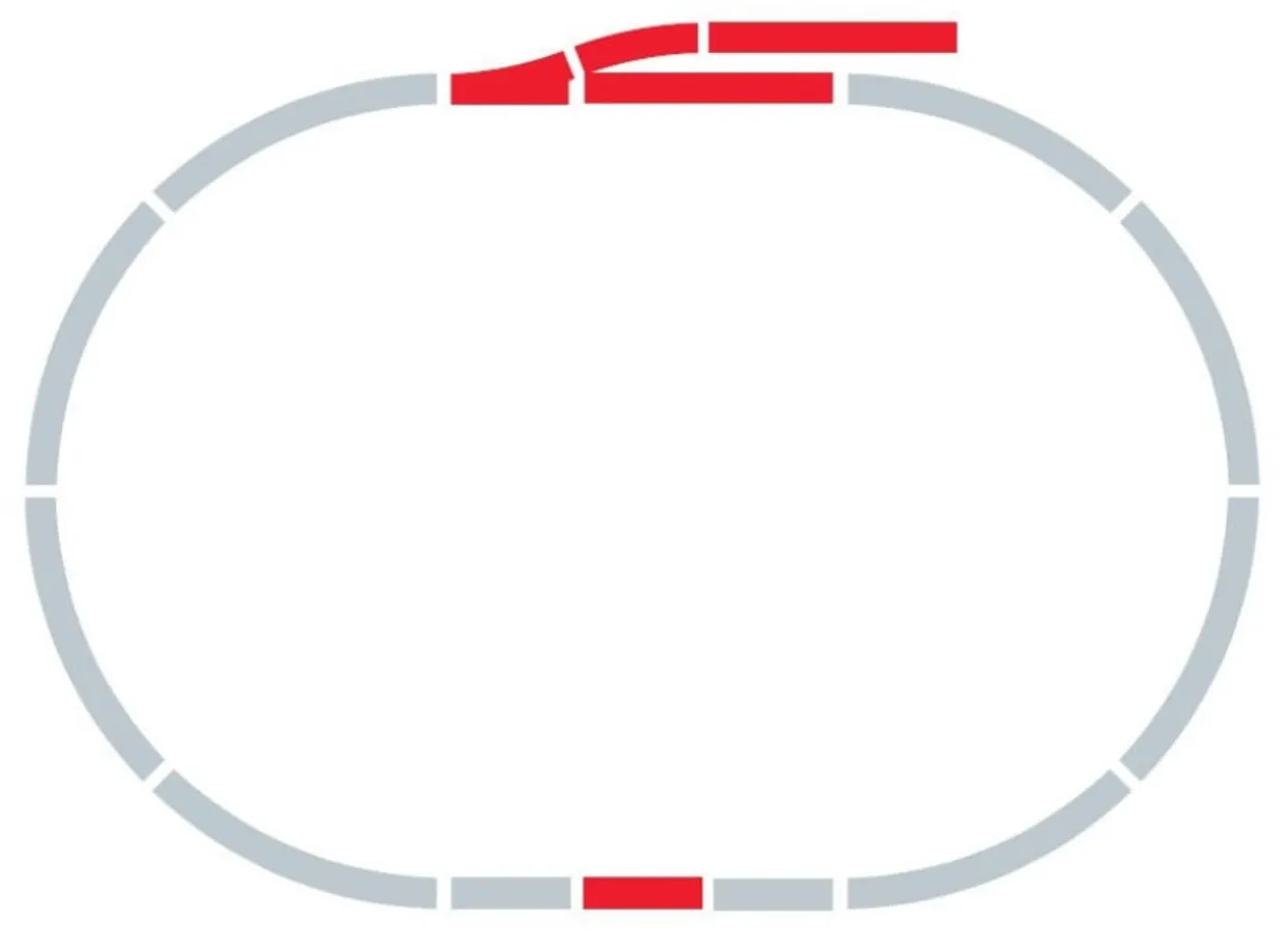 Illustation shows starter oval with Track Pack A extension (shaded red track parts show Track Pack A).