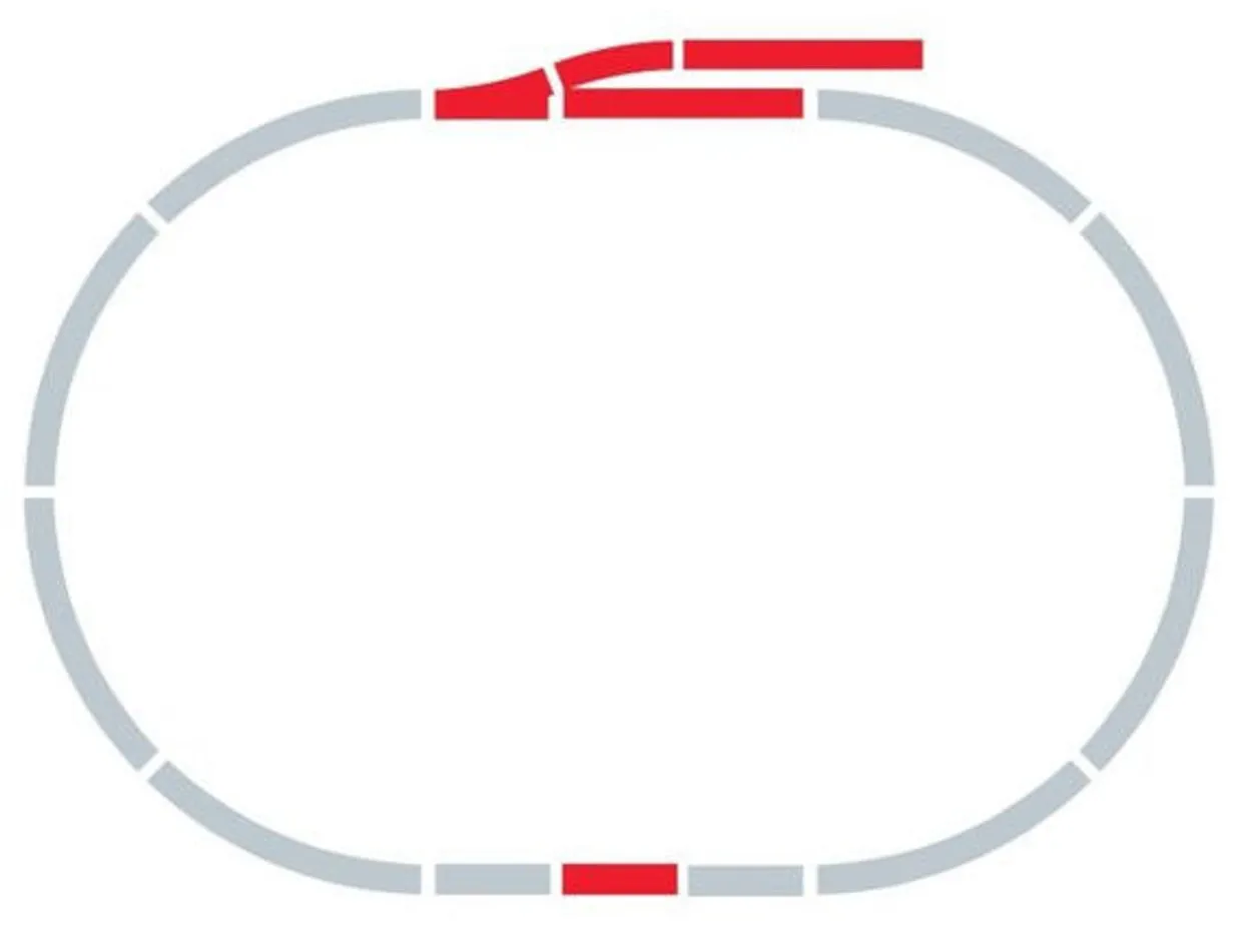 Add Track Pack A to the Starter Oval supplied with the smaller Hornby train sets to make this layout with point junction and siding.