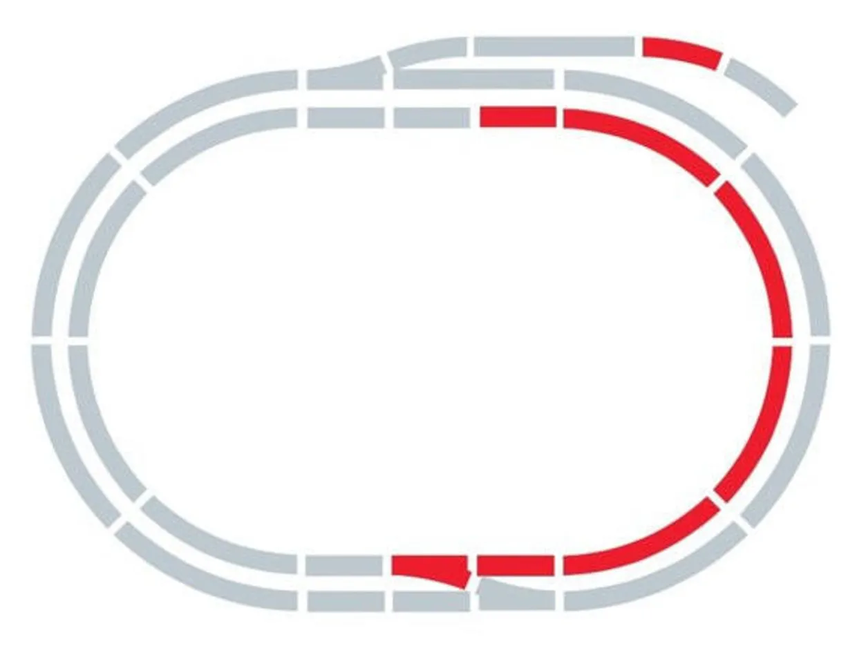 Add C to Starter Oval + A + B to make this twin track layout, capable of running two trains at one time if you add a second controller and transformer.