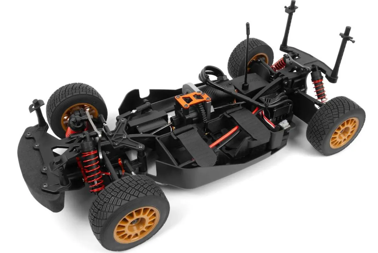 Underneath the officially licensed and famous replica Impreza body, the WR8 FLUX chassis is based on the HPI Bullet RC monster truck, which means it”s massively tough and can take a real beating on- or off-road! The WR8 FLUX is powered by a massive 3700KV brushless motor and waterproof 3S-capable speed controller, delivering power through tough metal gear differentials and the fully ball bearing-supported 4WD shaft drivetrain of the Bullet monster truck. Combine this with WR8 rally-style suspension geometry, custom-designed shock towers and dampers, plus extra-thick sway bars for extra control! Top it off with high-spec, soft compound tires and authentic rally wheels and you”ve got an instant head-turner in your hands!