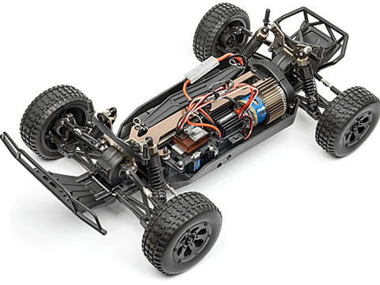 The HPI Maverick Strada DT Evo 1/10 RTR Radio Controlled Desert Truck with 4 oil-filled shocks, 4WD traction and long-travel suspension, is the ultimate truck for blasting through all types of terrain! The large tractor tread tyres and desert truck bodyshell provide awesome looks while the 4WD drivetrain and strong suspension give you the toughness you expect from a desert truck!