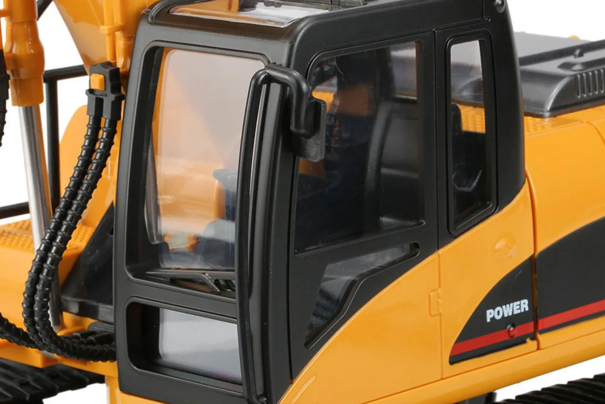 The 2.4GHz transmitter allows for 16 separate functions, allowing control of all of the models joints including 680° cab rotation. 2.4GHz technology allows for multiple models to run at the same time without interference. The transmitter can also be programmed to allow you to perform a series movements with just one button.