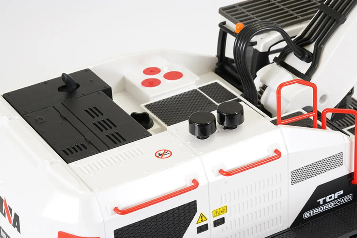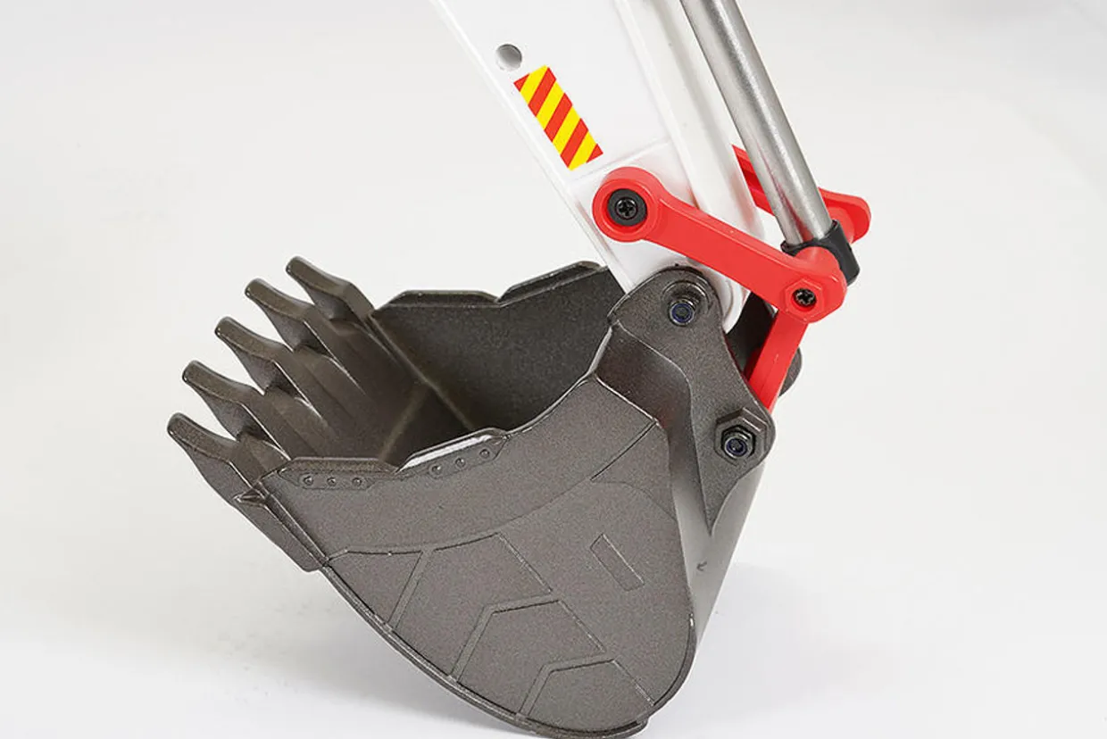 Forward, backwards, left, right, 360°cab rotation, shovel lift and tilt, big and small arm articulation are all controlled from the transmitter. Complete with sound effects, built-in LED red & blue flashing work lights. Included are a choice of excavator digging units: alloy timber wood grabber, plastic ball grabber head, alloy drill bit and excavator shovel for you to take on any digging or moving job!