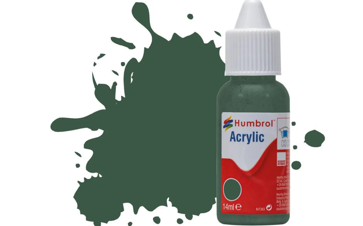 The Humbrol 116 14ml Acrylic Matt US Dark Green Dropper Bottle is a water-based primer paint with a matt finish that is ideal for use on plastic model kits. Water-based paints can be thinned with water or specialist acrylic thinners. The Humbrol range offers a wide selection of colours.