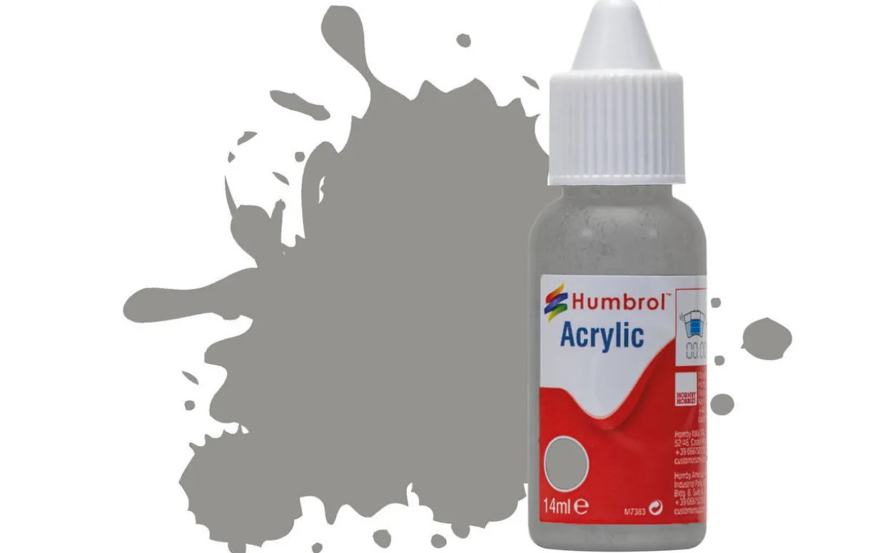 The Humbrol 126 14ml Acrylic Matt US Medium Grey Dropper Bottle is a water-based primer paint with a matt finish that is ideal for use on plastic model kits. Water-based paints can be thinned with water or specialist acrylic thinners. The Humbrol range offers a wide selection of colours.
