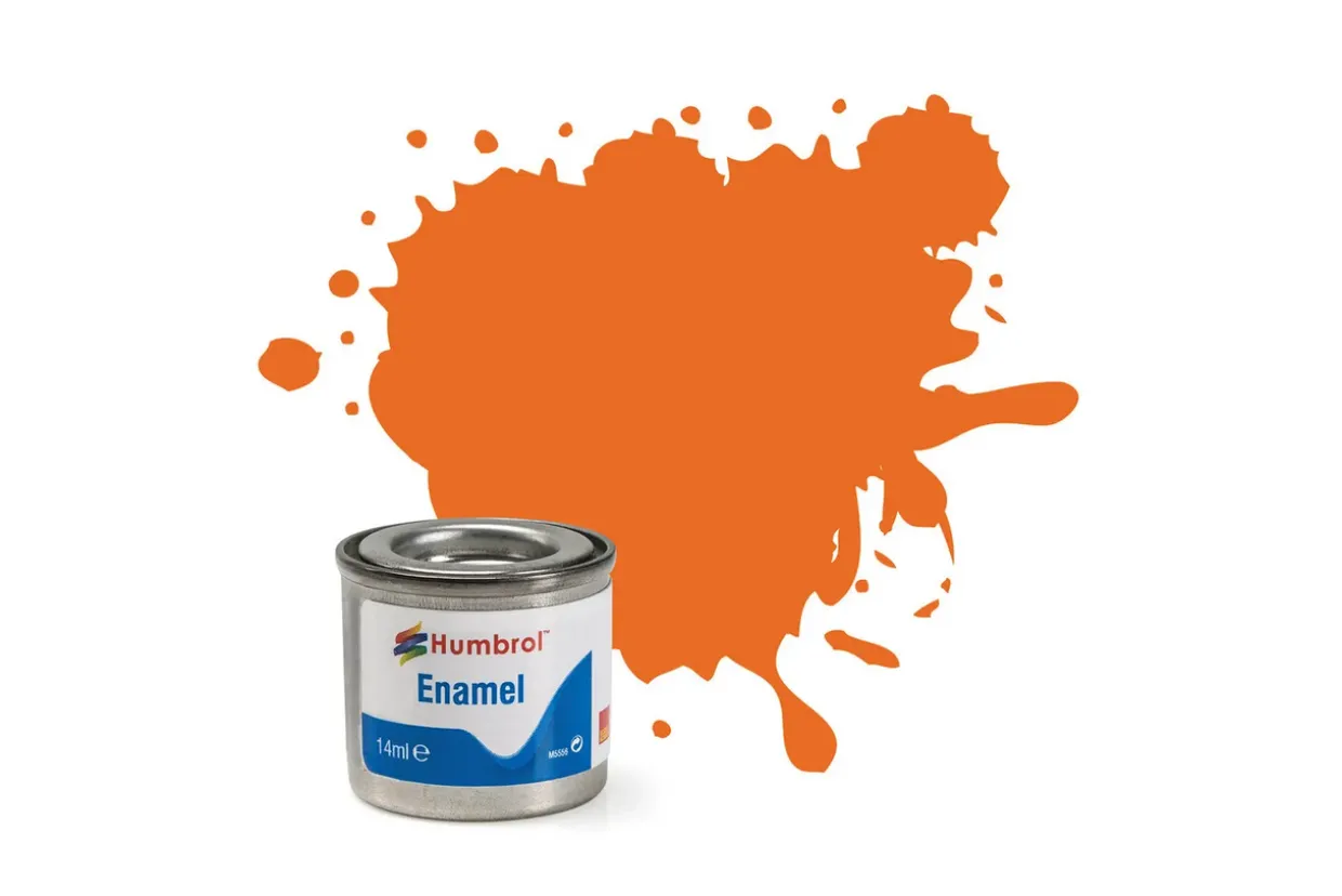 The Humbrol 46 14ml Enamel Matt Orange Paint Tinlet is an oil-based paint with a matt finish that is ideal for use on plastic model kits. The Humbrol range offers a wide selection of colours.