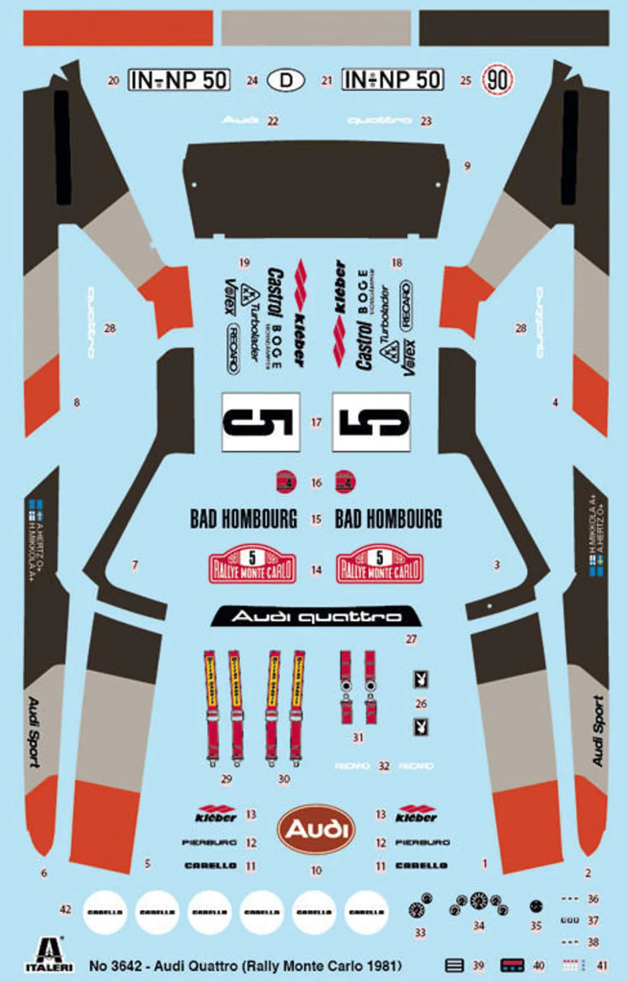 The Italeri 1/24 Audi Quattro Rally from our 1/24 and 1/25 scale car model kits range accurately recreates the real-life German rally car. This plastic model kit requires paint and glue to complete.