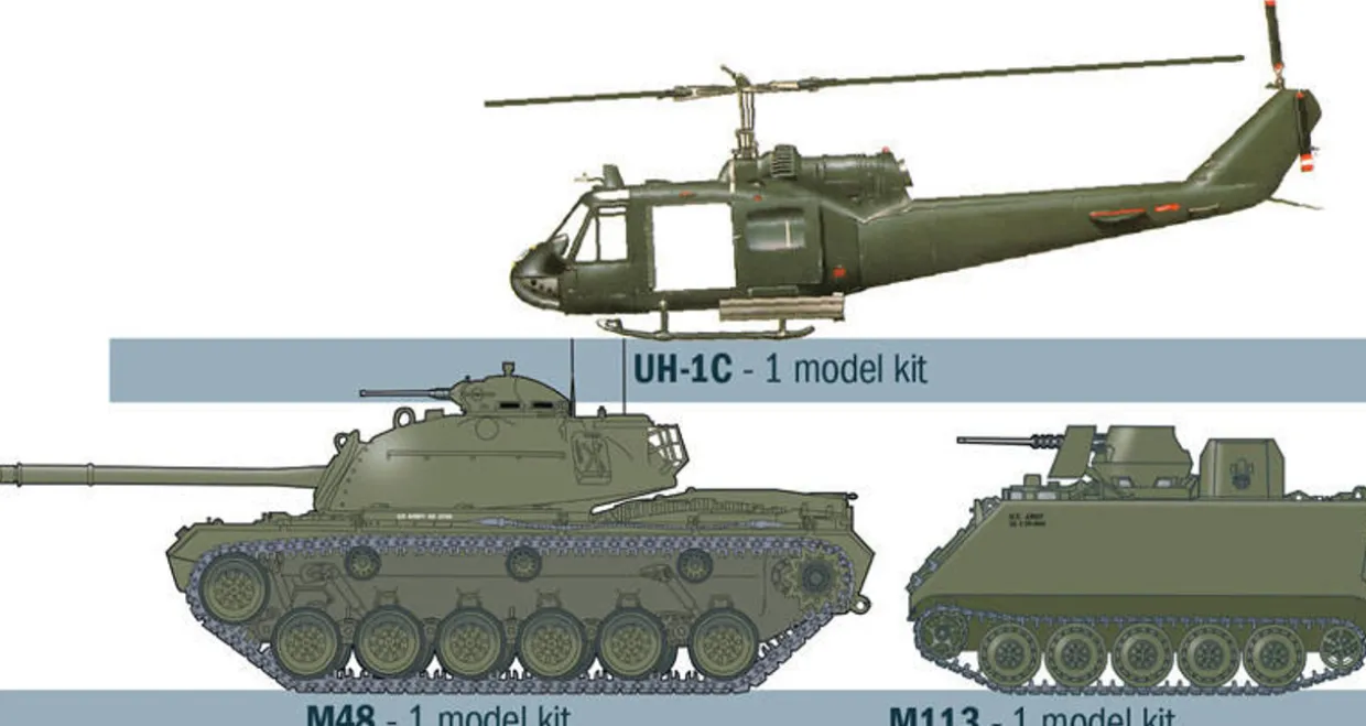 The Italeri 1/72 Operation Silver Bayonet 1965 is a plastic model kit in the Italeri Battle Game Sets range. This model diorama set requires glue and paint to complete. The Set comes with