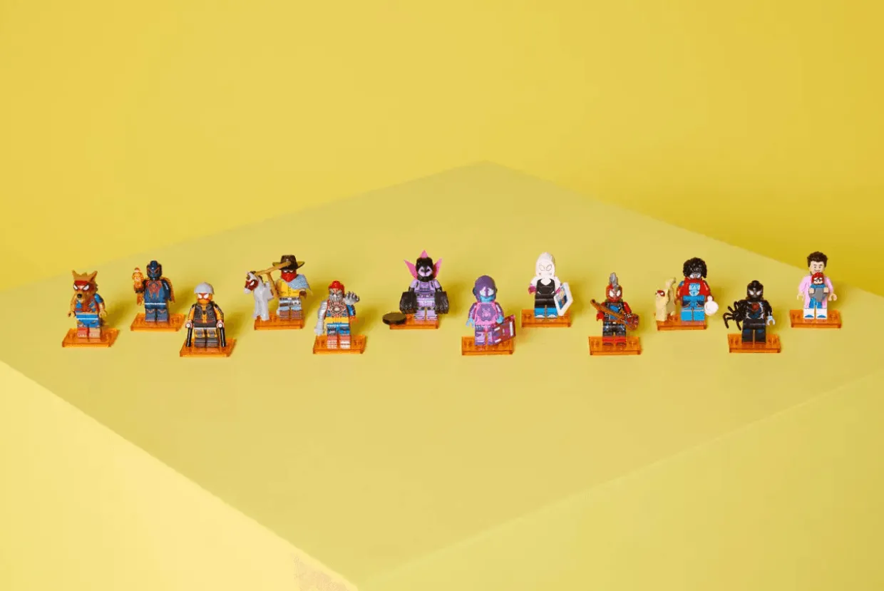 There is 1 surprise collectible Spider-Man toy construction minifigure in each box and a total of 12 to collect: Miles Morales/Spider-Man, Miguel O’Hara/Spider-Man 2099, Gwen Stacy/Spider Gwen, Hobie Brown/Spider-Punk, Pavitr Prabhakar/Spider-Man India, Miles G. Morales/Prowler, Peter B. Parker/Spider-Man & May “Mayday” Parker, Margo Kess/Spider-Byte, Peter Parker/Werewolf Spider-Man, Patrick O’Hara/Web-Slinger, Petra Parker/Cyborg Spider-Woman and Charlotte Webber/Sun-Spider.