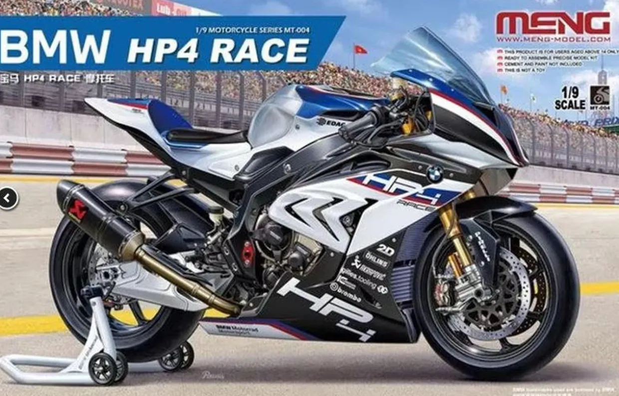 The Meng 1/9 BMW HP4 Race from our 1/9 scale motorcycle model kits range accurately recreates the real-life German racing motorbike. This plastic model kit requires paint and glue to complete.