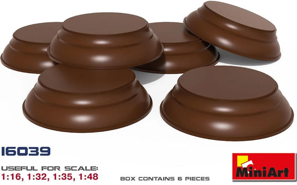 MiniArt 1/16 Figure bases provide a small display stand for 1/16 scale model figures.