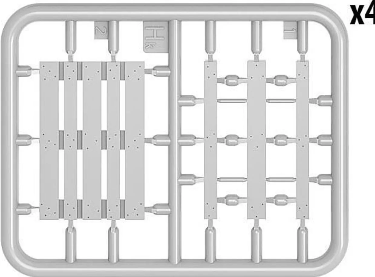 The MiniArt Hand Pallet Truck Set in 1/35 scale from the plastic model accessories range depicts a pair of modern pallet trucks. This plastic kit requires paint and glue to complete.