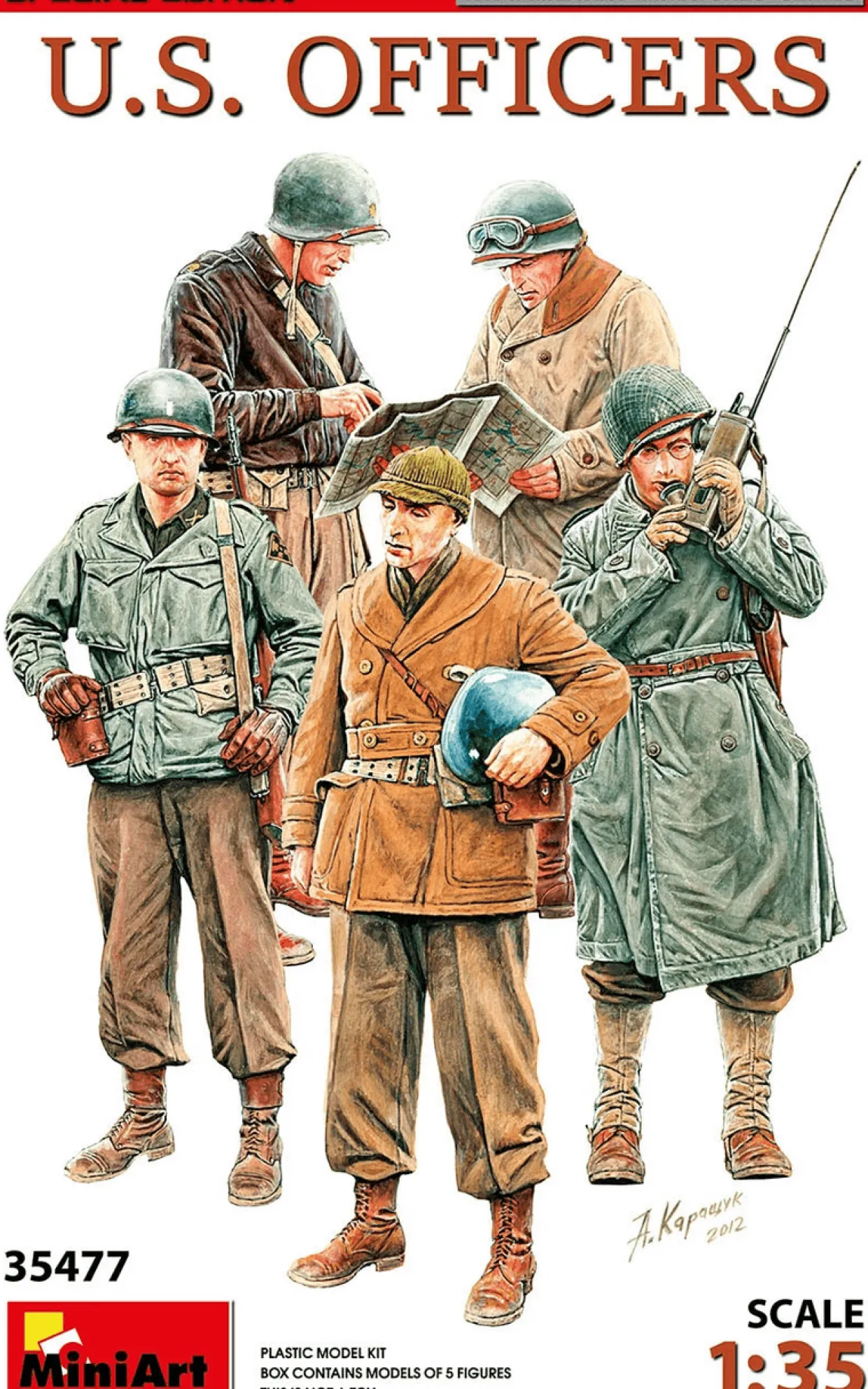 The MiniArt 1/35 WWII US Officers from our 1/35 scale figure model kits range accurately recreates the real-life soldiers from World War II. This plastic model kit requires paint and glue to complete..