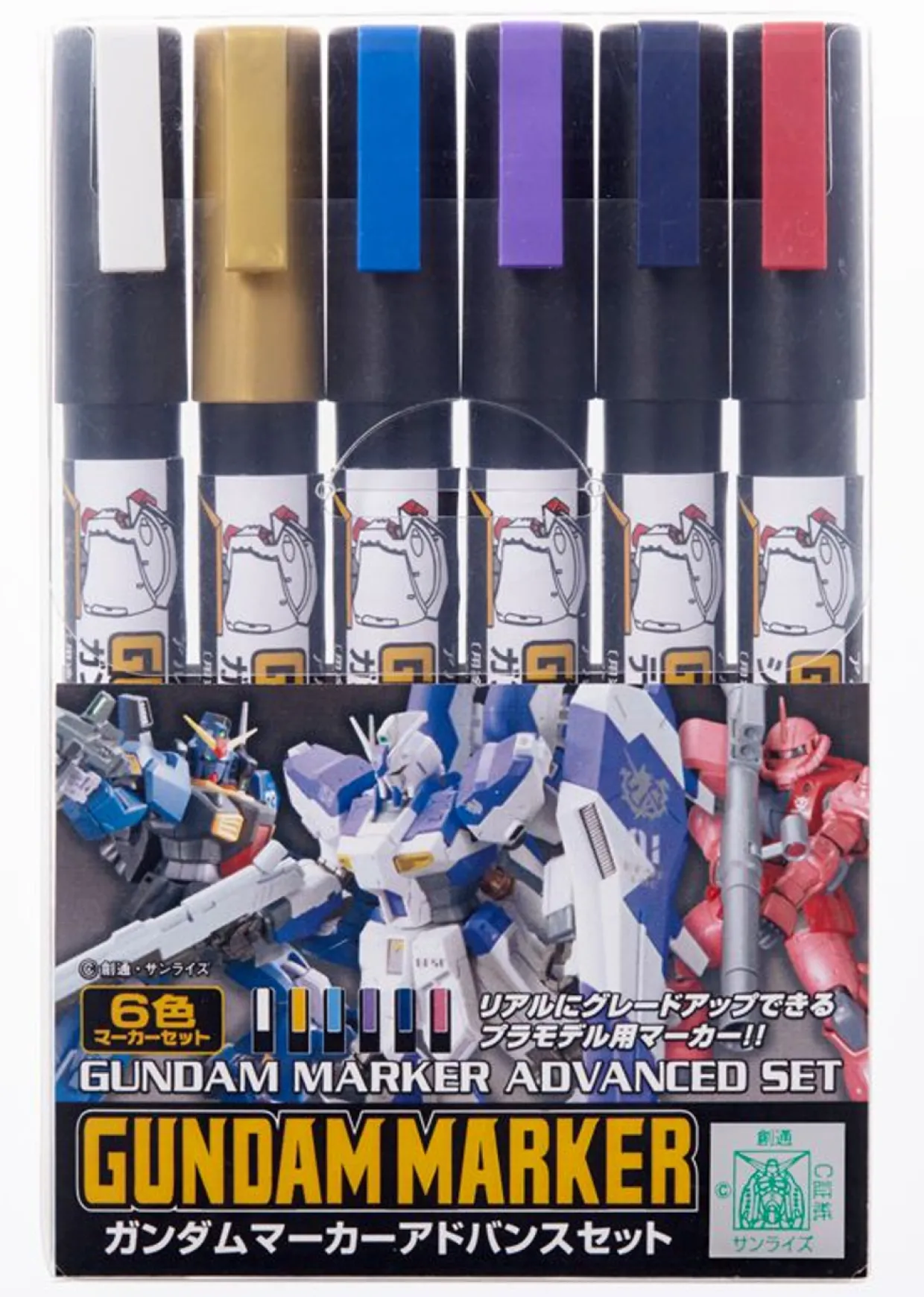 The Mr Hobby Gundam Markers Advanced Marker Set from the Gundam Markers range provides a set of 6 coloured marker pens.