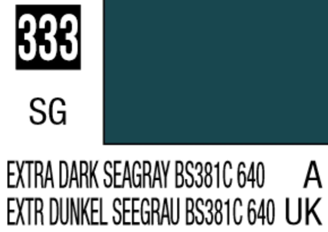 The Mr Hobby Mr Colour 10ml 333 Extra Dark Sea Gray BS381C/640 from the solvent-based acrylic paints range provides a superb quality paint for model making.