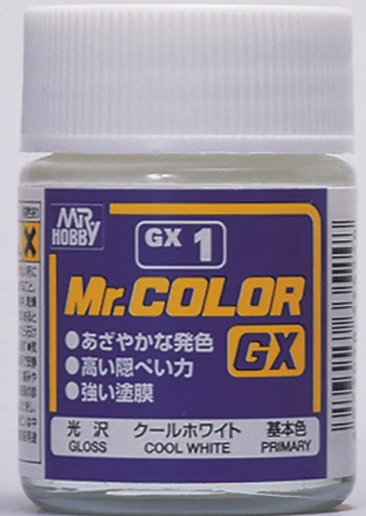 Mr Color GX is a paint series with improved quality of our best-selling Mr COLOR solvent-based acrylic paints. It features more vivid colors, excellent coverage over base layers, and a smoother and stronger coating film. We were able to produce this high quality paint without the use of toluene.
