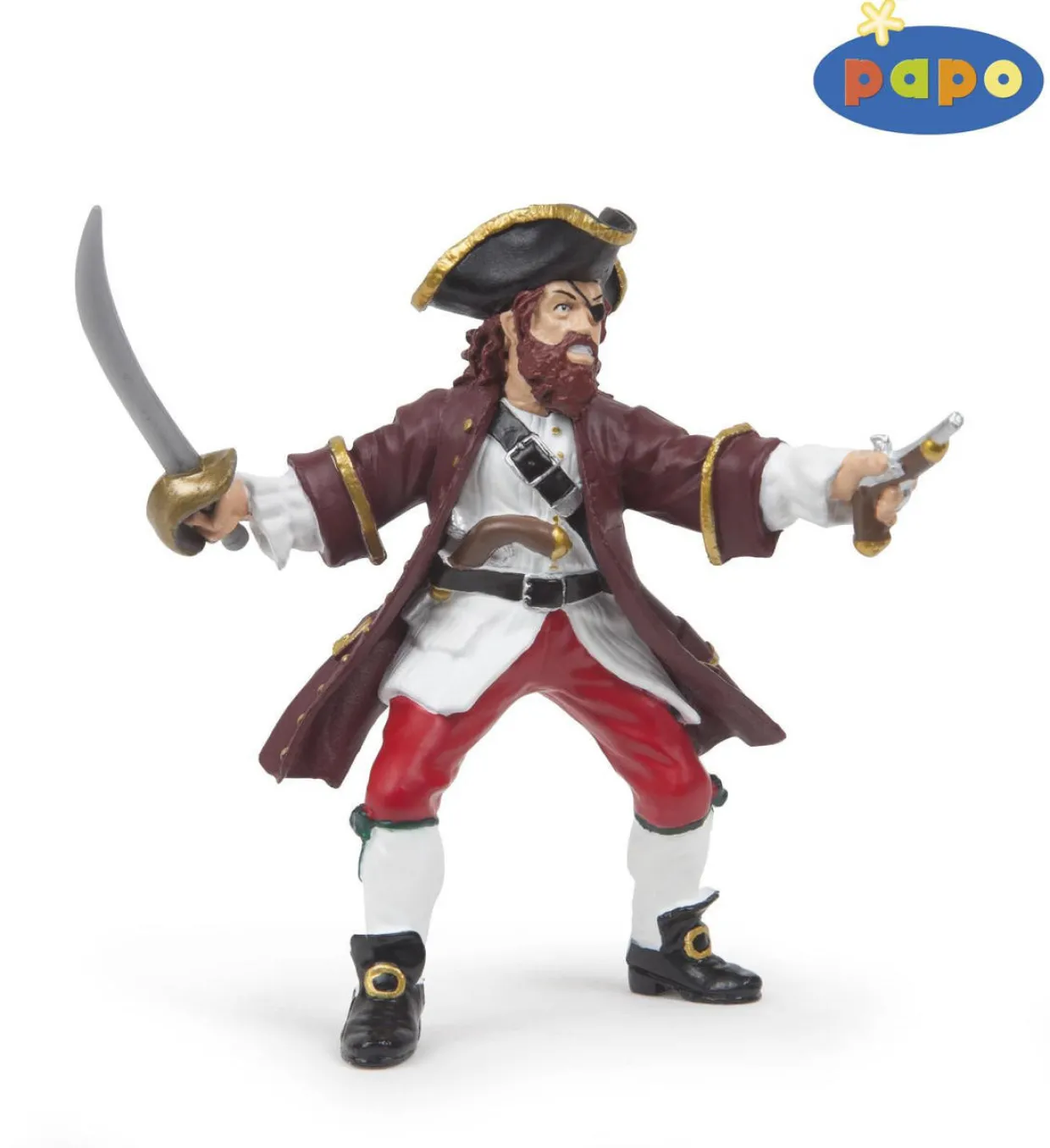 Papo manufacture wonderful, amazingly accurate models of all sorts of toy figures, particularly pirates and corsairs including this model of Barbarossa which can be complemented by any of the items in the Pirate World range. All Papo model figures are beautifully hand painted to give wonderful role play to children and are also great collectors items for the Pirate enthusiast. These Papo models give a wide ranging addition to a child’s imagination and education and offer great play value. All Papo models comply completely with relevant safety regulations and are CE tested and approved.