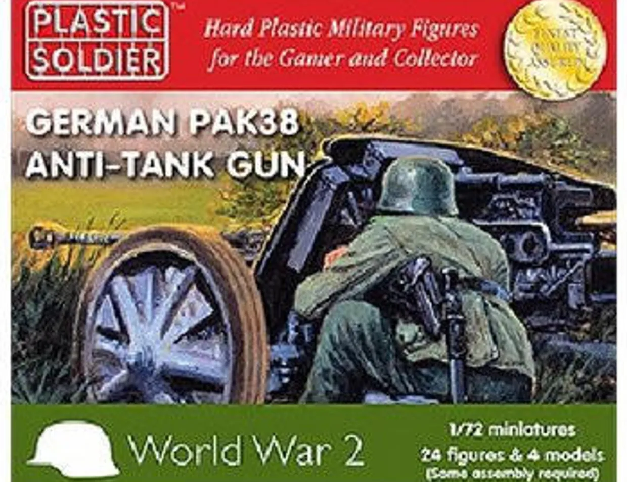 The Plastic Soldier Company 1/72 German PaK 38 Anti-Tank Gun from our 1/72 and 1/76 scale figure model kits range accurately recreates the real-life German anti-tank guns from World War II. This plastic model kit requires paint, and may require glue, to complete.