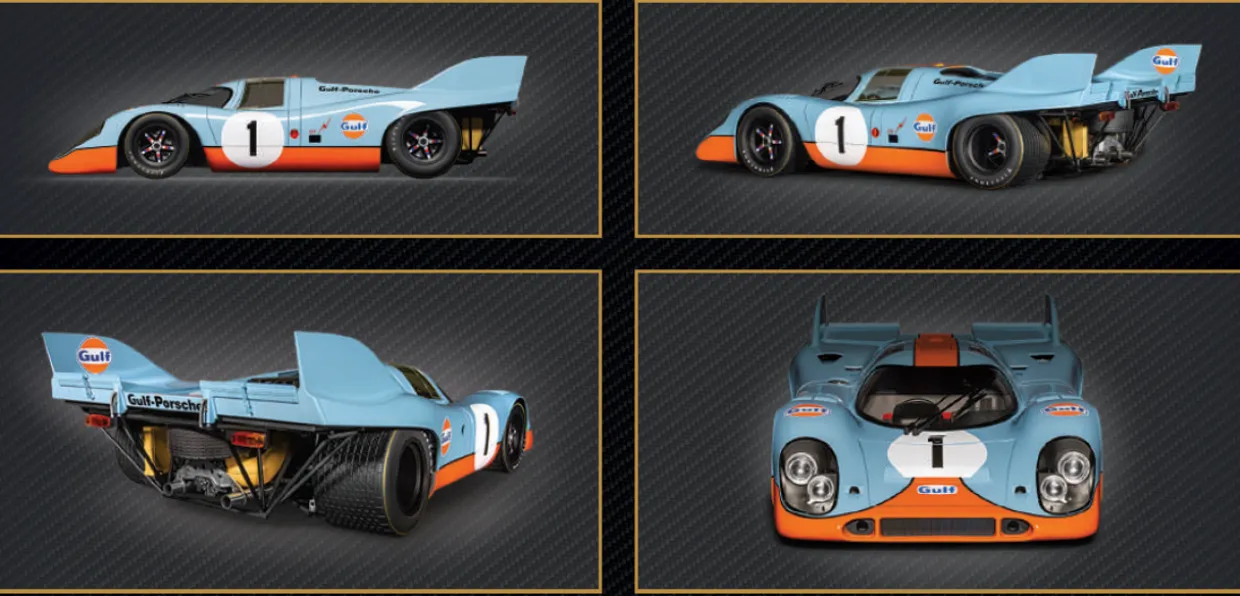 Pocher is proud to unveil its latest masterpiece: the Porsche 917 Gulf Edition 1:8 Scale Model Kit, the legendary racing car that ruled the 1970s tracks.