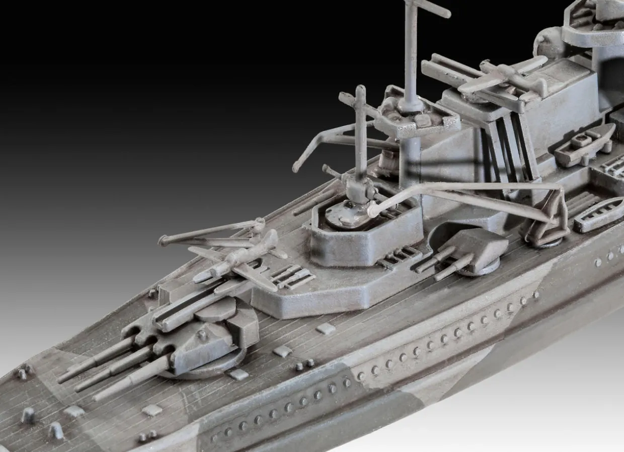 The Revell 1/1200 Gneisenau from our 1/1200 scale ship model kits range accurately recreates the real-life German battleship from World War II. Starter sets include the paint and glue required to complete the model.