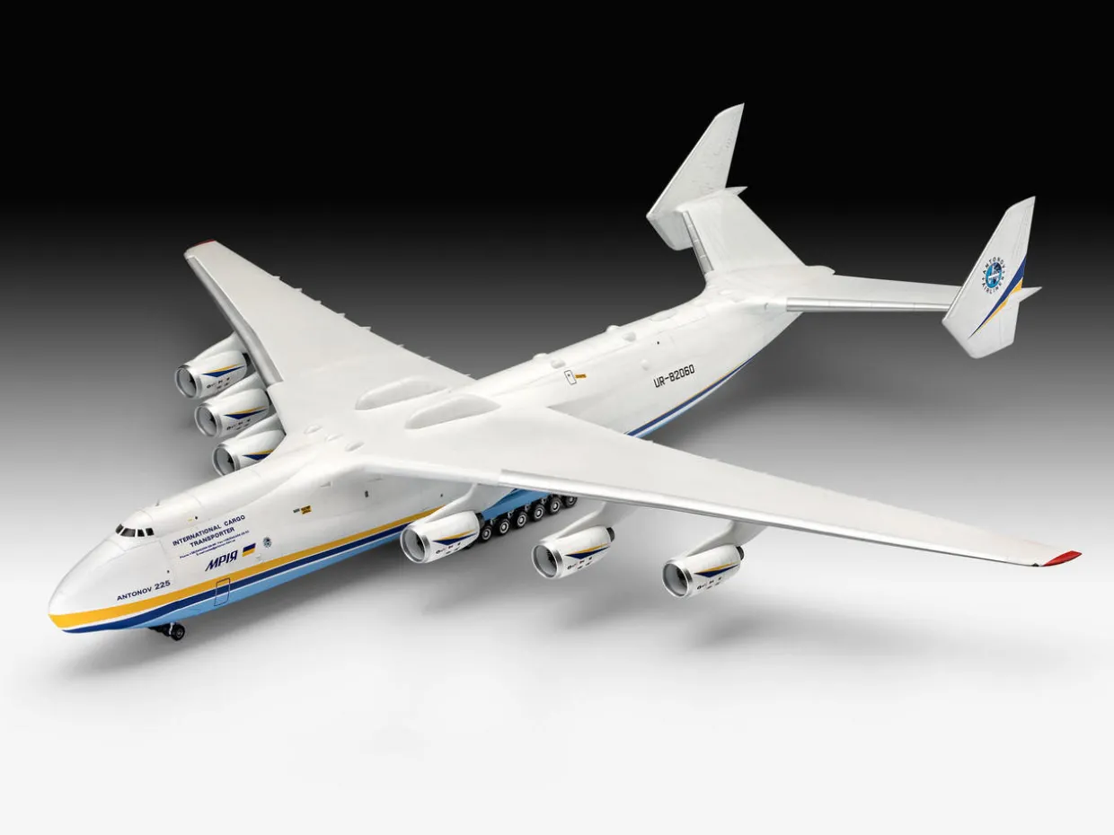 The Revell 1/144 Antonov An-225 Mrija from our 1/144 and 1/288 scale aircraft model kits range accurately recreates the real-life super sized cargo aircraft. This plastic model kit requires paint and glue to complete.