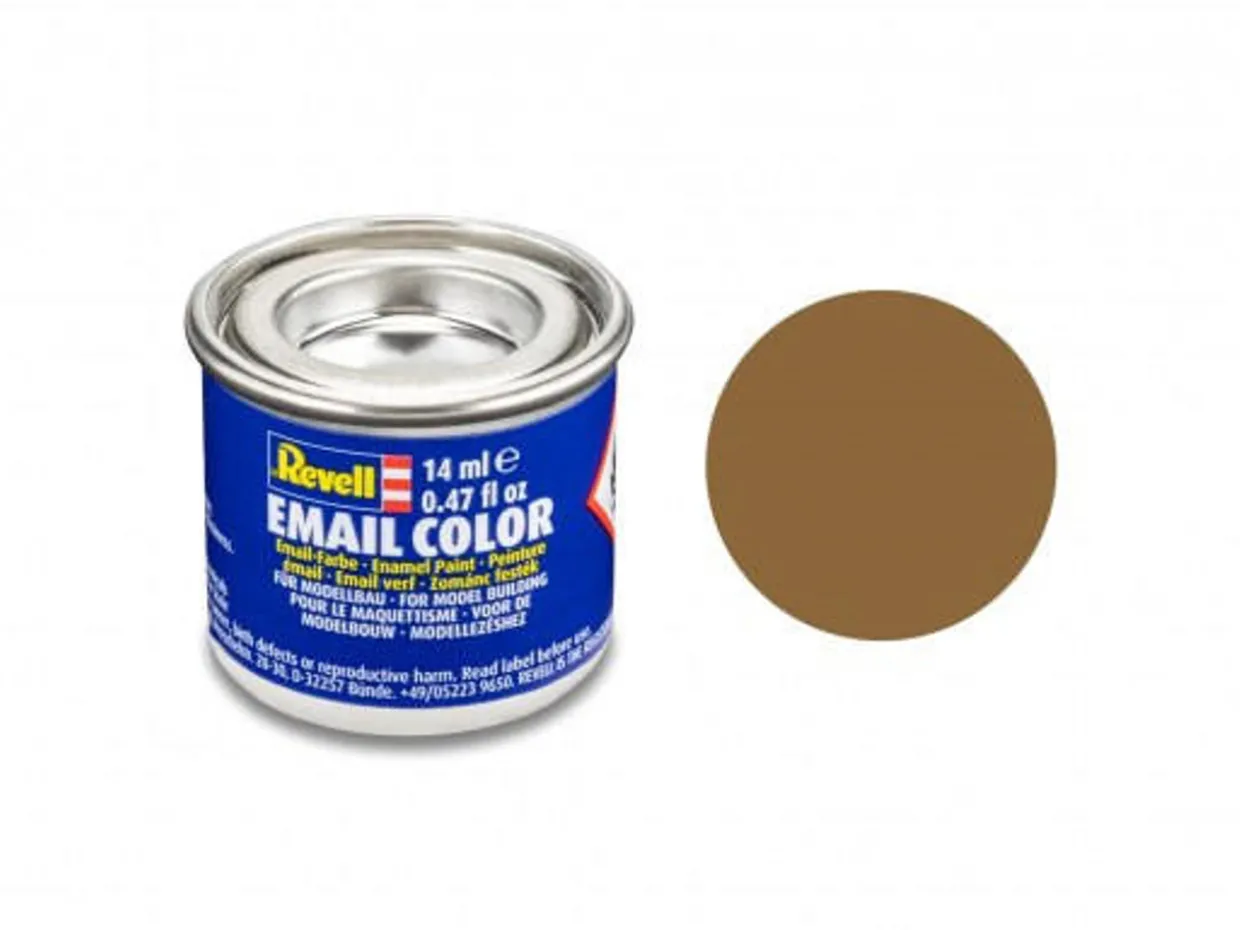 The Revell 14ml Enamel Matt RAF Dark-earth is a synthetic resin enamel paint designed for painting plastic model kits. Many other materials can also be painted with Revell Enamel paints, and all shades can be diluted with Revell Color Mix. Revell Enamel can also be applied with an airbrush if correctly thinned.