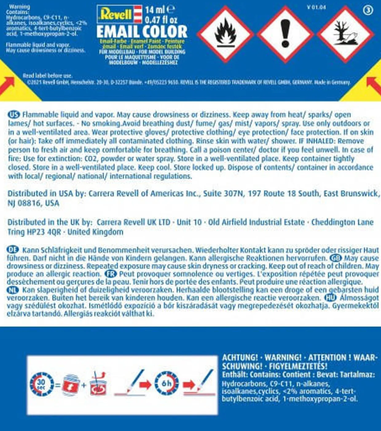 The Revell 14ml Enamel Metallic Steel is a synthetic resin enamel paint designed for painting plastic model kits. Many other materials can also be painted with Revell Enamel paints, and all shades can be diluted with Revell Color Mix. Revell Enamel can also be applied with an airbrush if correctly thinned.