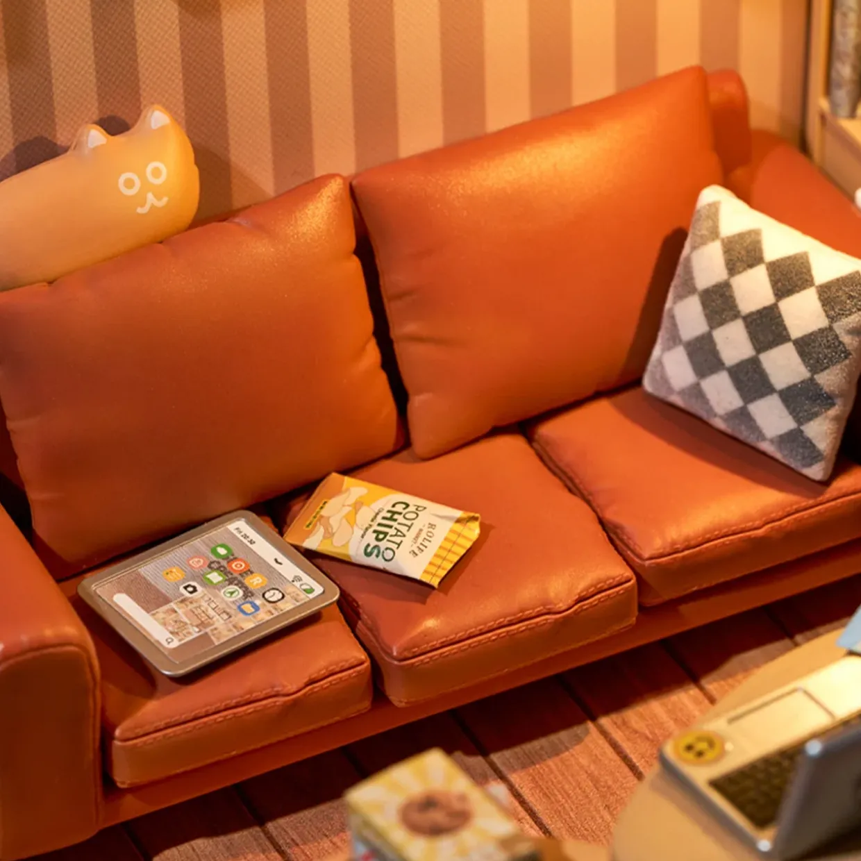 Immerse yourself in a miniature space filled with tranquility and warmth with the Cozy Living Lounge Miniature House and find full comfort after a day’s work.