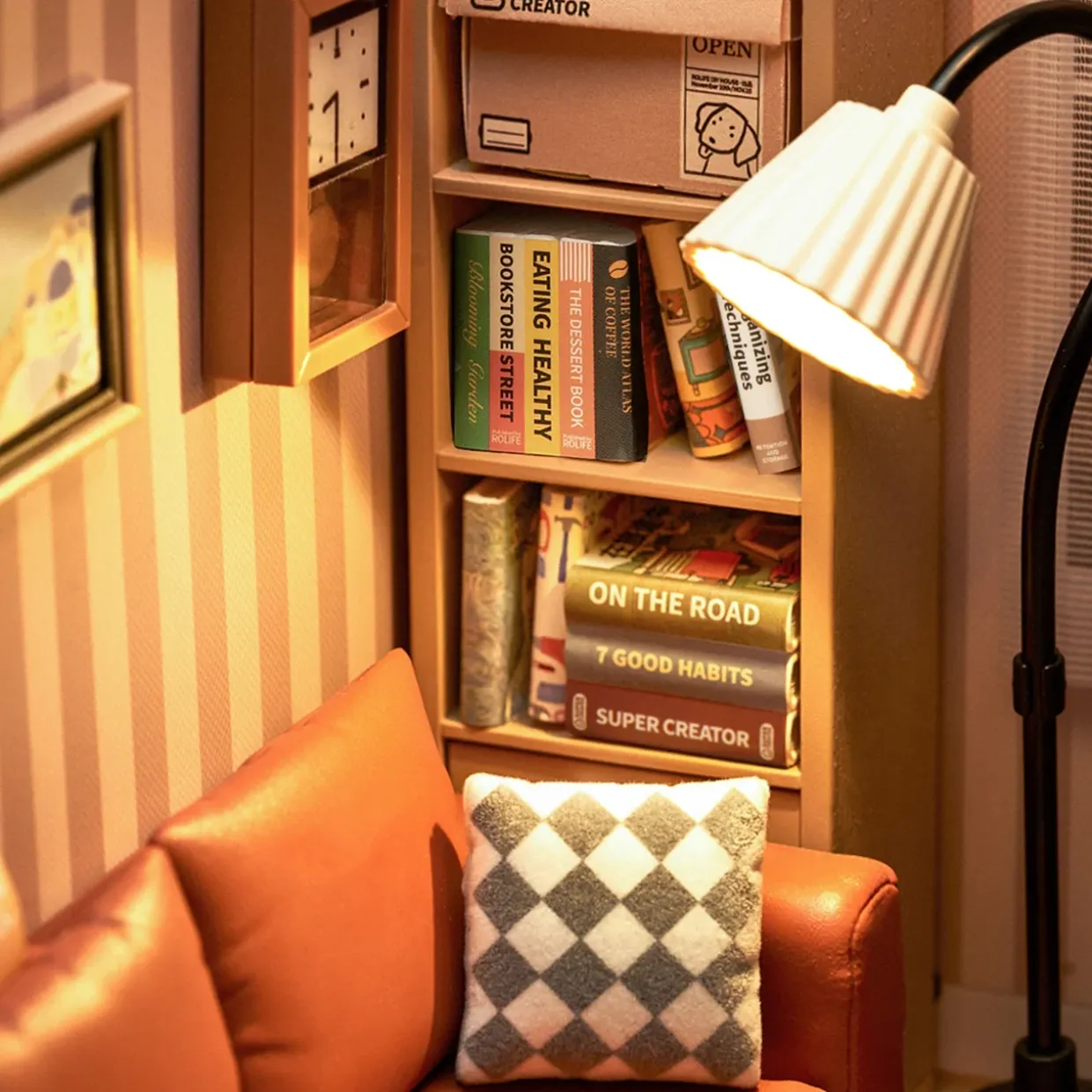 The Rolife Cozy Living Lounge Plastic Diorama Kit from the wooden model kits range builds a beautiful model diorama filled with lots of small details. This diorama model kit requires paint and glue to complete.