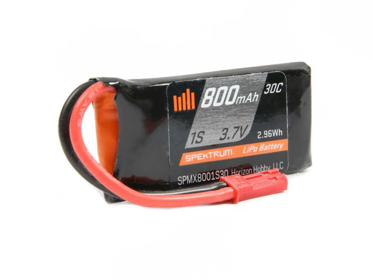 The Spektrum 800mAh 1S 3.7V 30C LiPo Battery; JST.